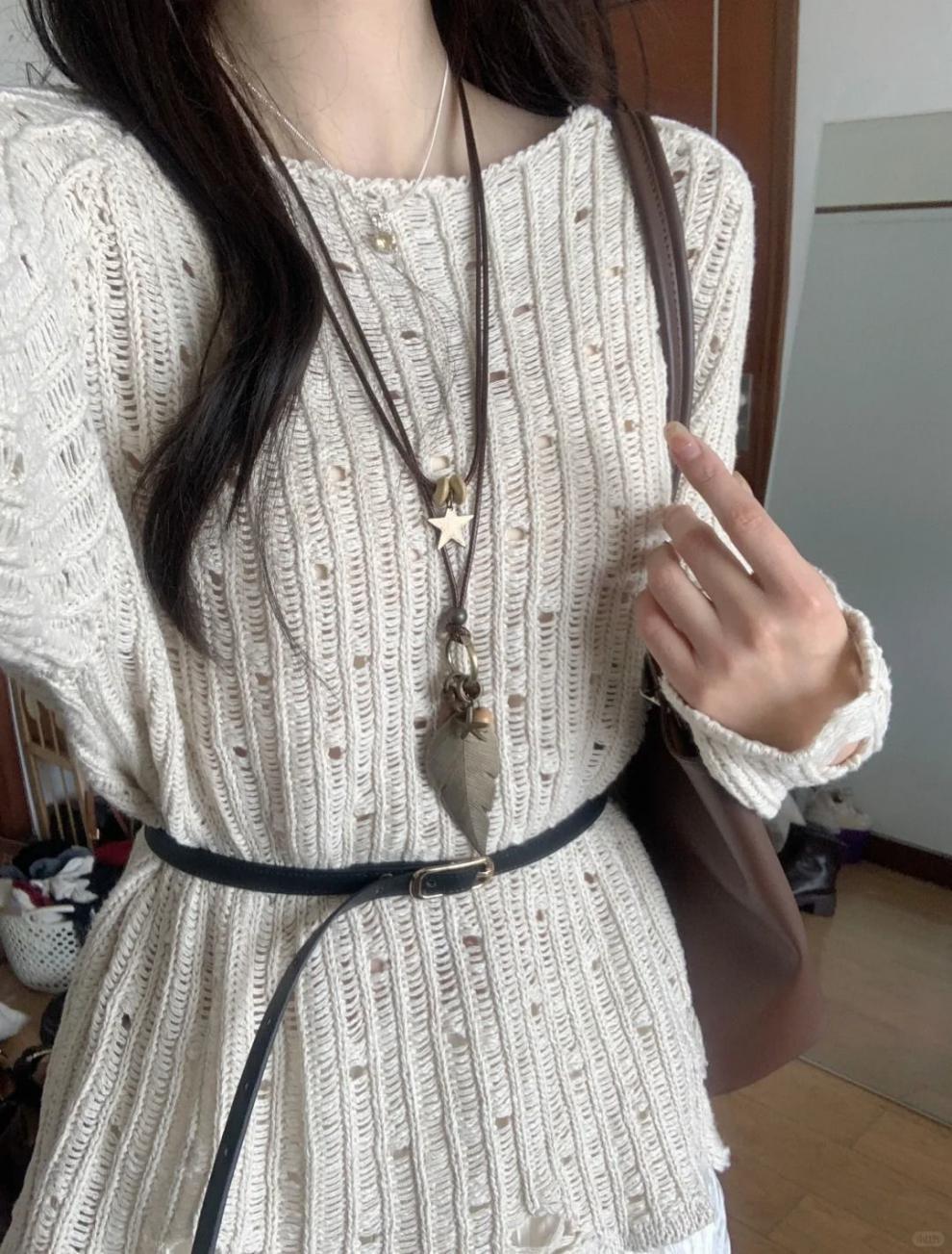 • 중공 스웨터 [벨트 포함]