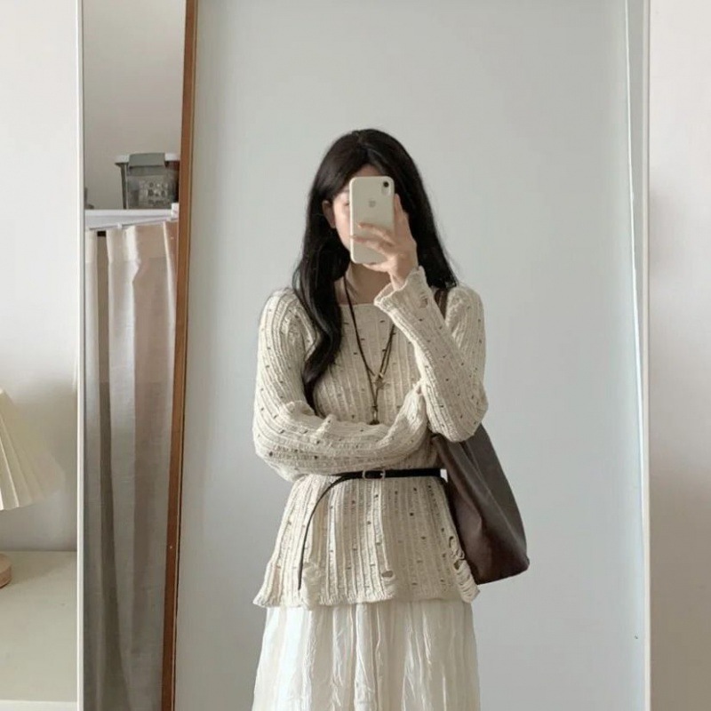 한국 드라마 여성 세트 봄 원피스 게으른 바람 속이 빈 스웨터 스커트 투피스 세트 착용스토어 가기