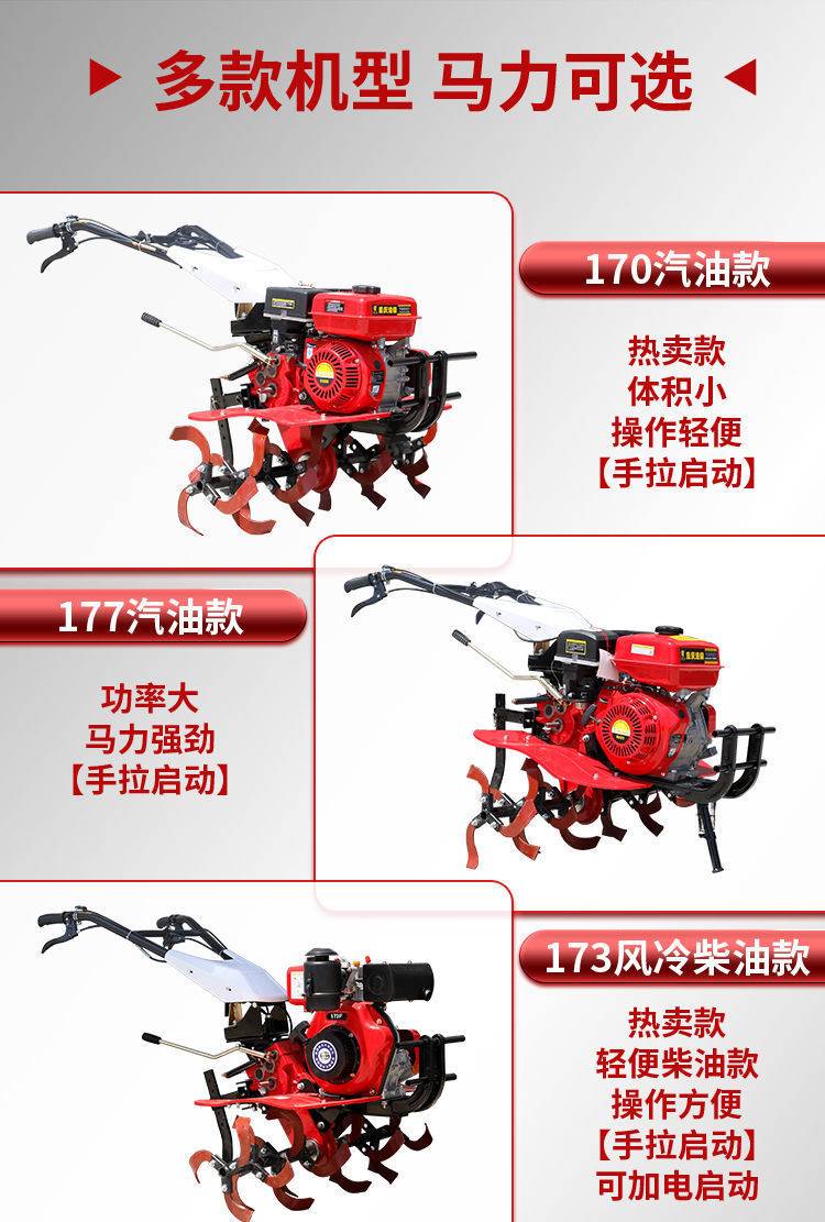 새로운 작은 농업 마이크로 경운기 새로운 노인 경운기 디젤 다기능 토양 회전 및 도랑 쟁기 회전 경운기스토어 가기