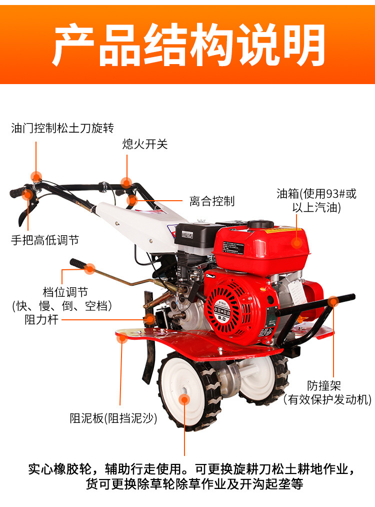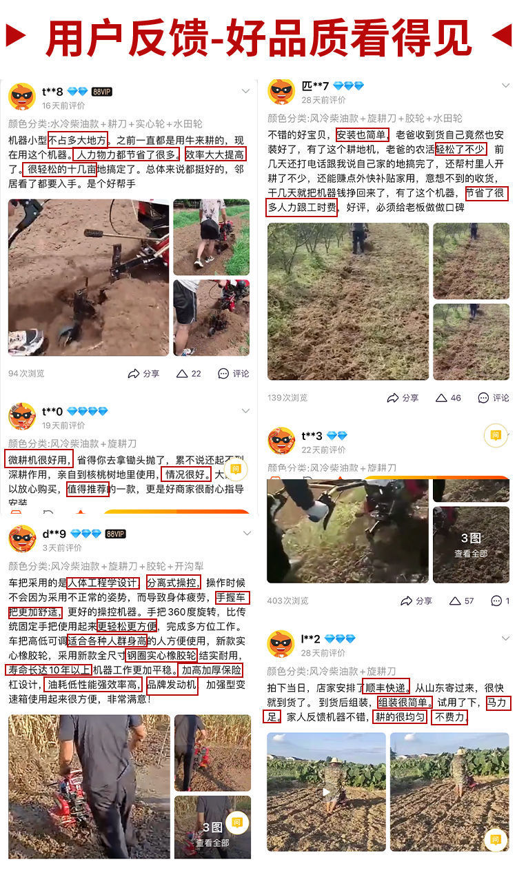 • 173 디젤 핸드 풀 + 회전식 경작 + 고무 바퀴 + 제초 바퀴