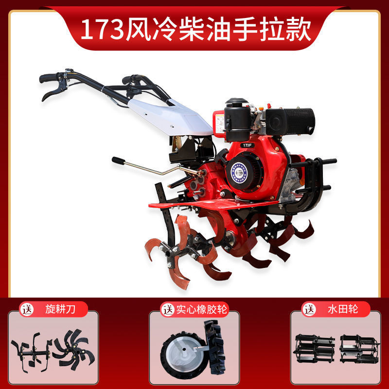 • 173 디젤 핸드 풀 + 회전식 경작 + 고무 바퀴 + 물밭 바퀴