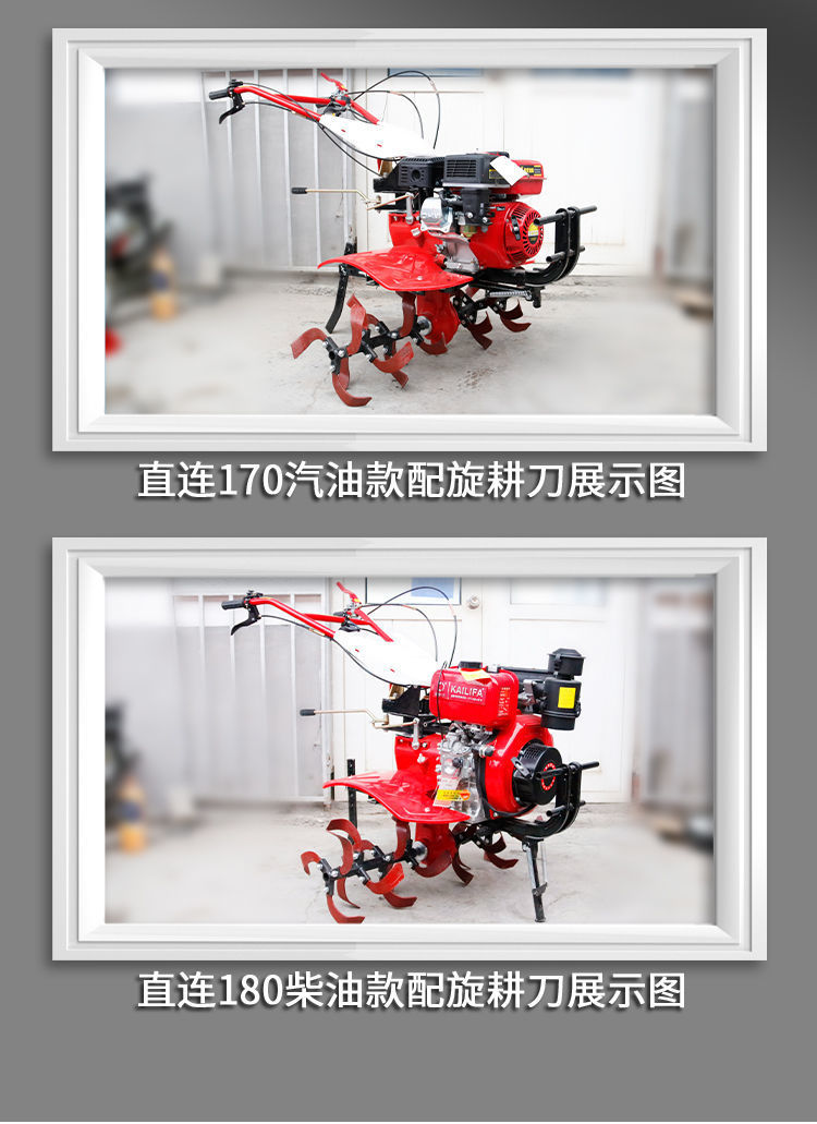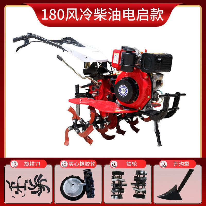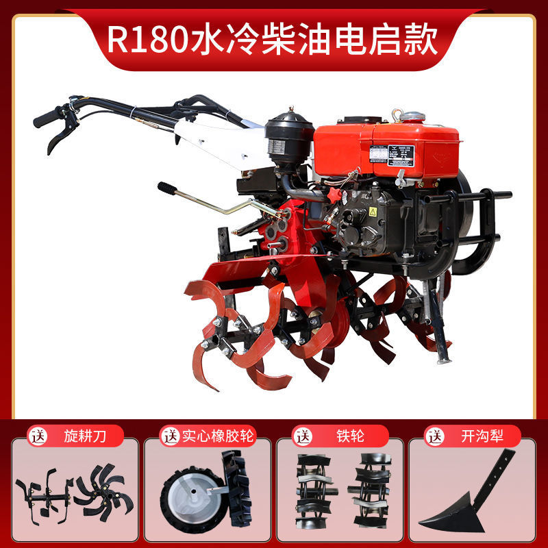 • 180 디젤 전기 시동 + 회전식 경작 + 고무 바퀴 + 철 바퀴 + 쟁기