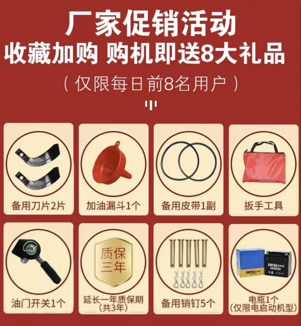 • R180 전기 시동 + 회전식 경작 + 고무 바퀴 + 철 바퀴 + 쟁기