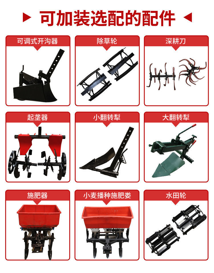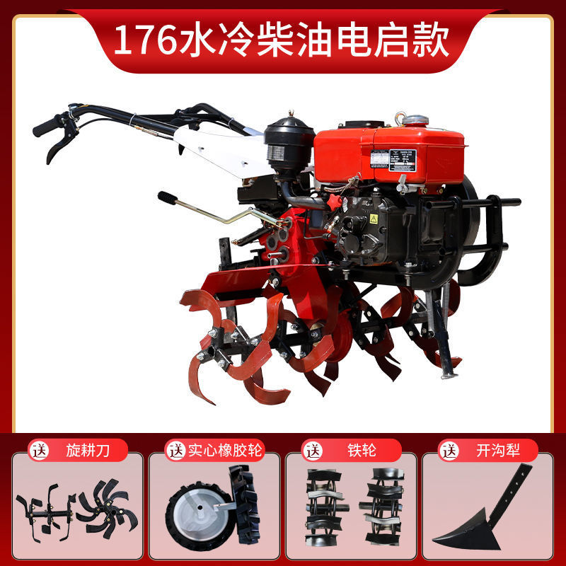 • 176 디젤 전기 시동 + 회전식 경작 + 고무 바퀴 + 철 바퀴 + 쟁기