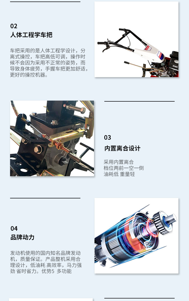 • 173 디젤 핸드풀 + 회전식 경작 + 솔리드 휠 + 능선기
