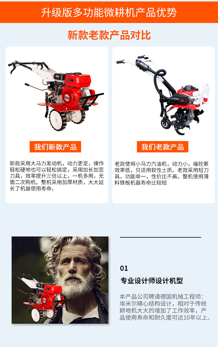 새로운 작은 농업 마이크로 경운기 새로운 노인 경운기 디젤 다기능 토양 회전 및 도랑 쟁기 회전 경운기