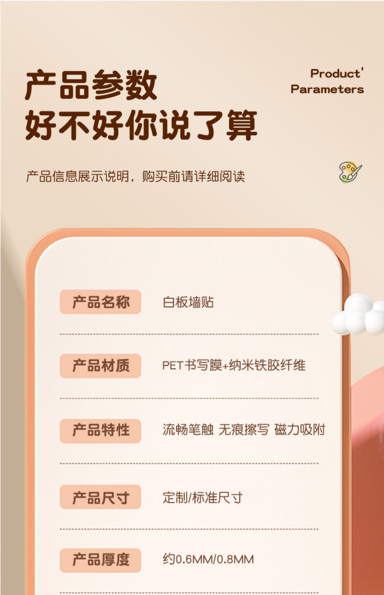 • [두꺼움] [무광택 눈보호-무반사] 만능벽-80x100cm