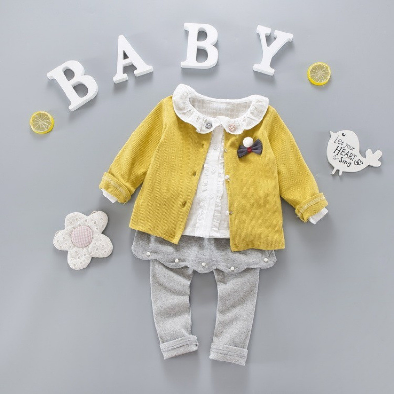 소녀 세트 봄 2025 새로운 어린이 서양식 어린 소녀의 옷 아기의 캐주얼 바지 봄과 가을 3 피스 세트스토어 가기