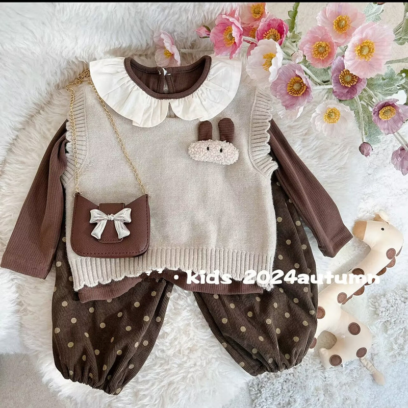• 린 토끼 조끼 + 이너웨어 + 브라운 팬츠, 가방 미포함