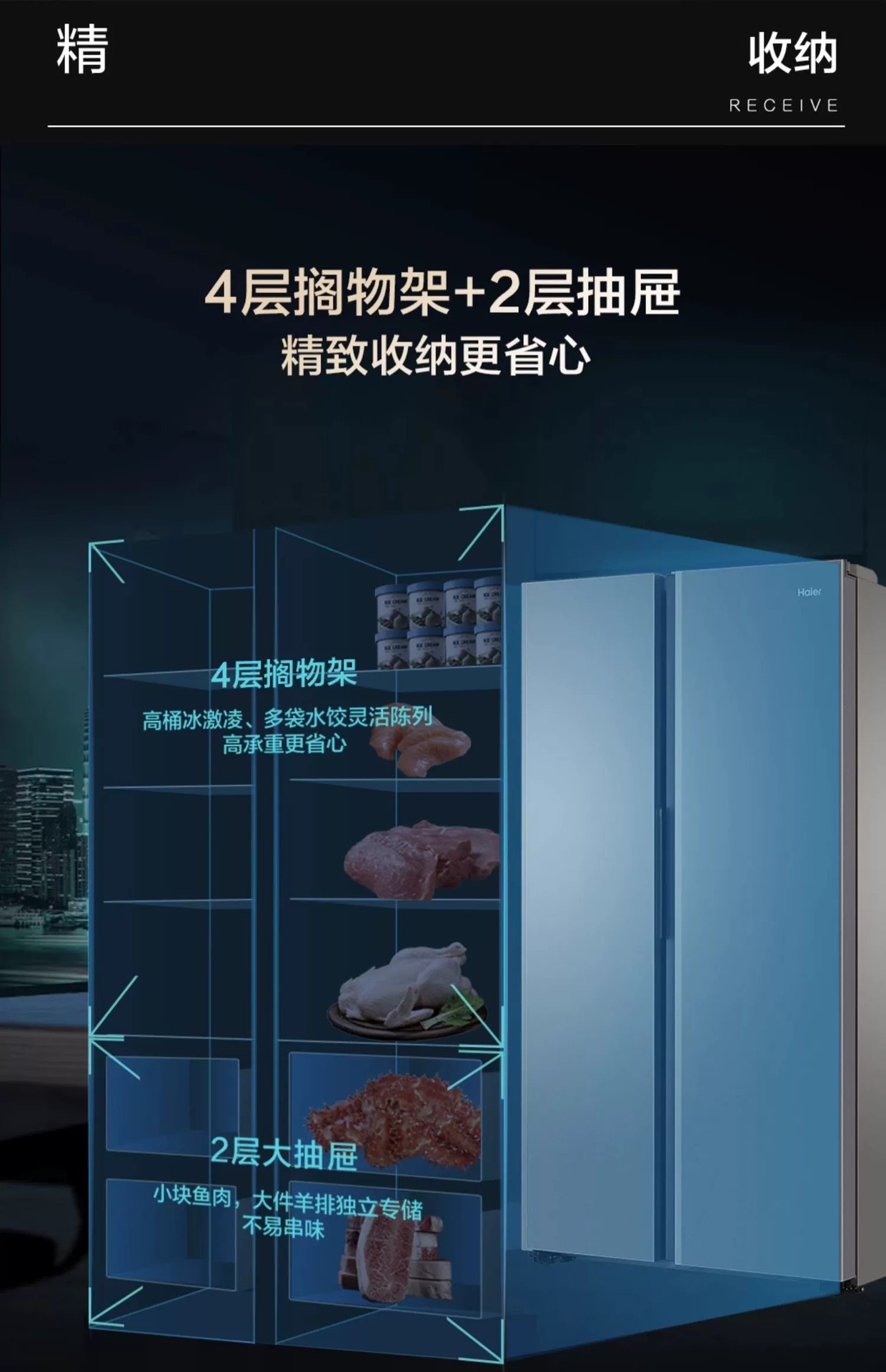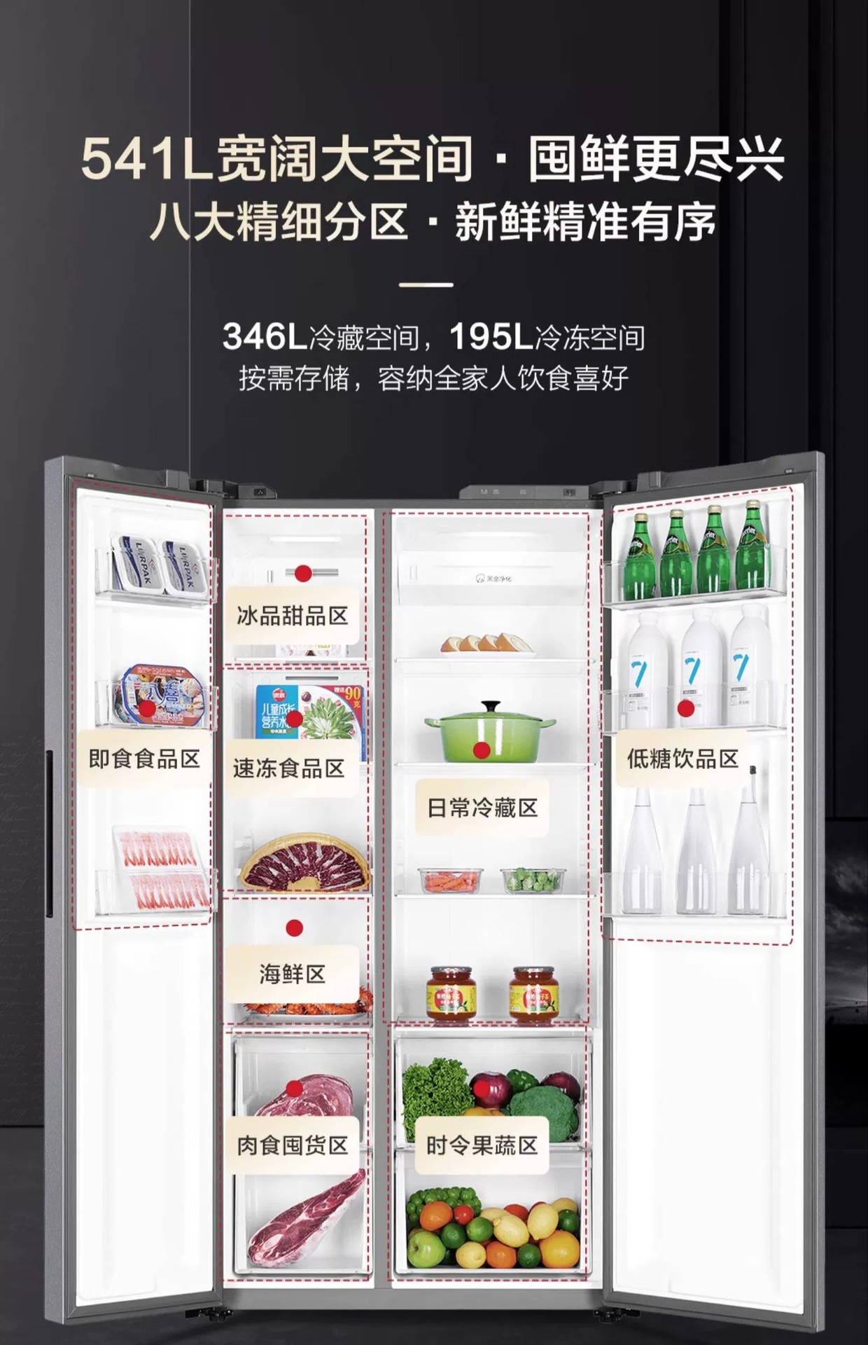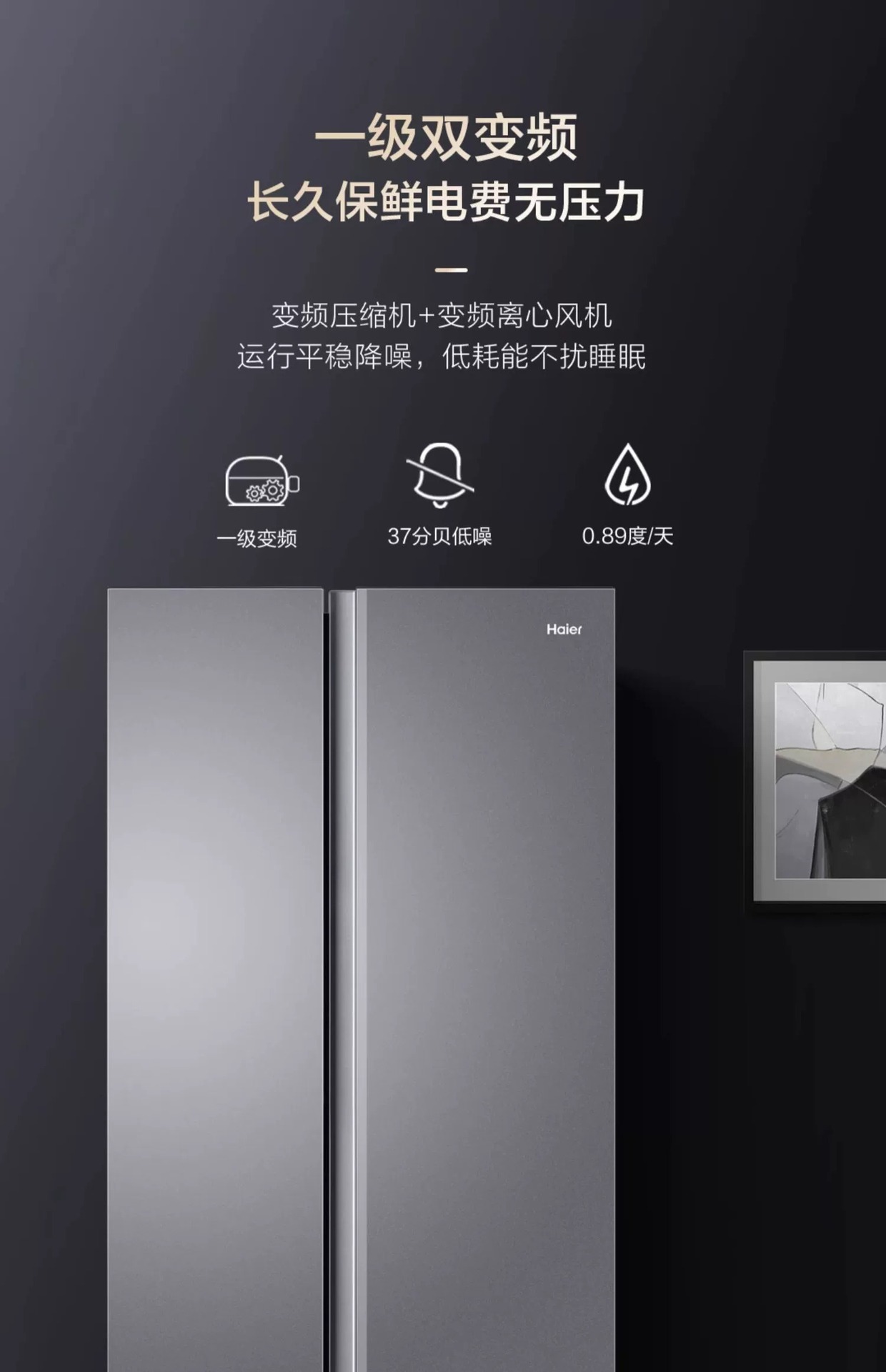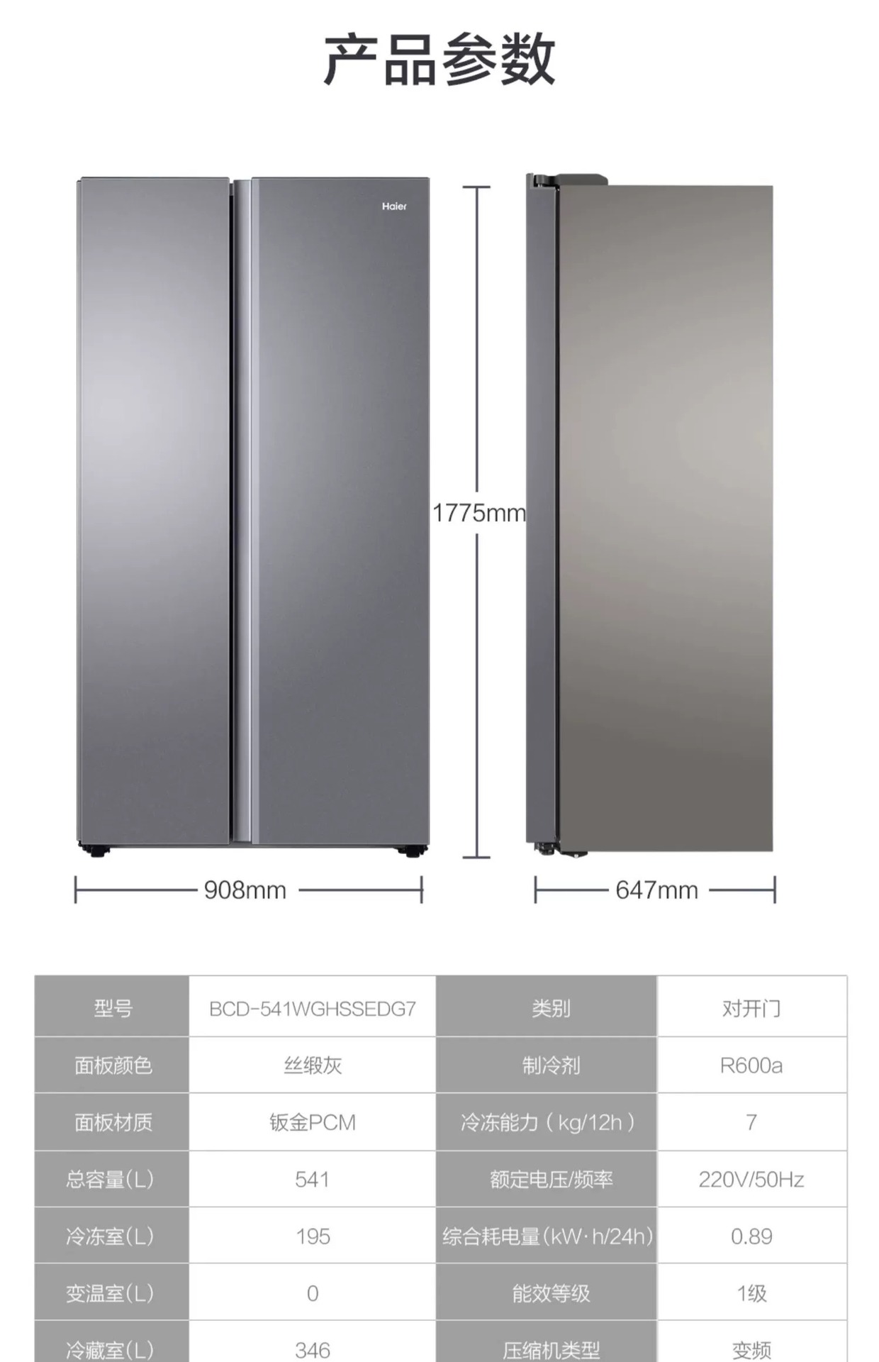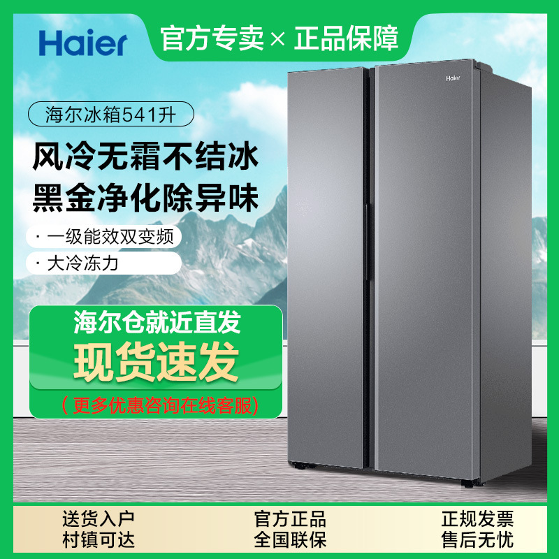 하이얼 541L 스플릿 더블 도어 1 차 주파수 변환 대용량 공랭식 서리없는 깨끗한 맛 보존 가정용 냉장고 532스토어 가기