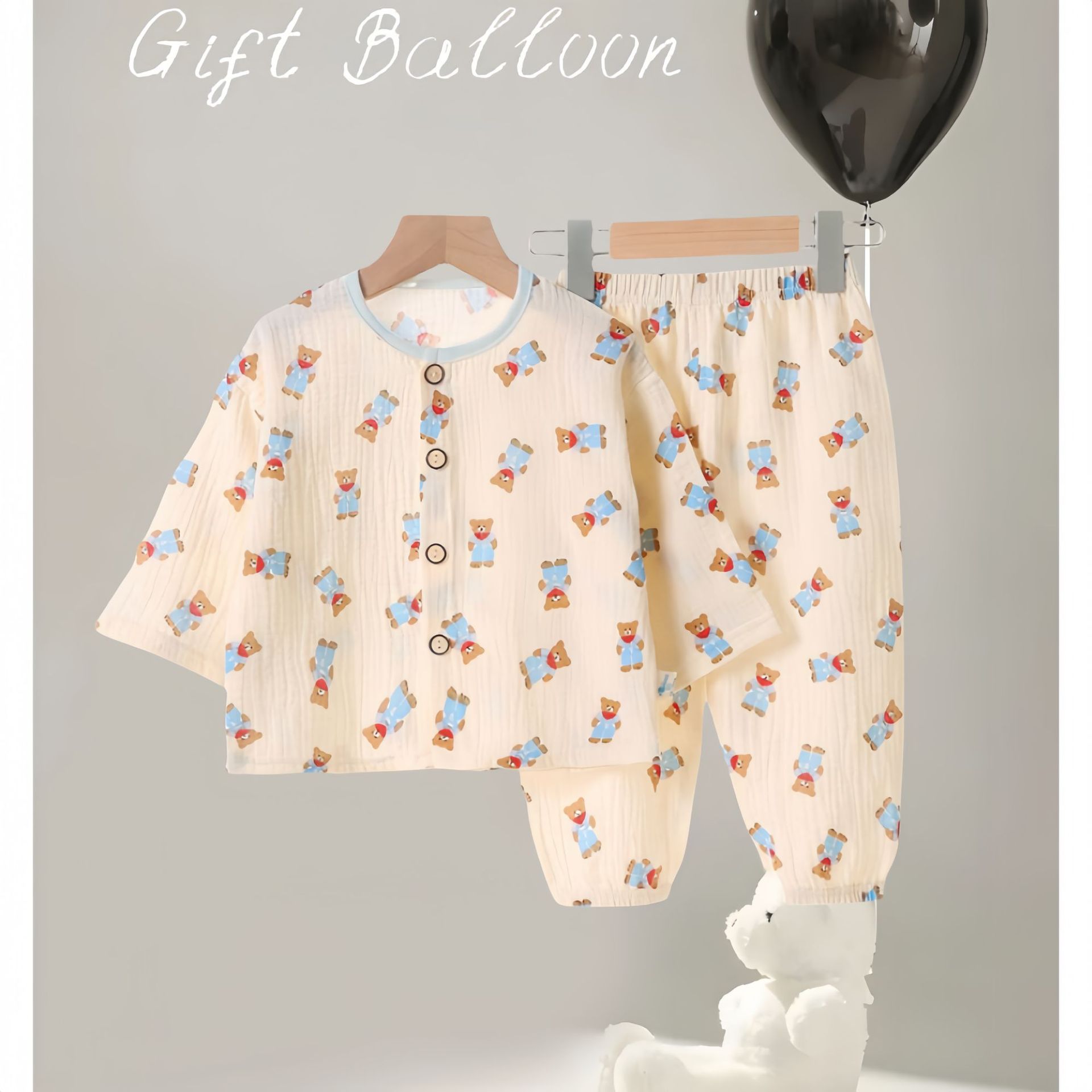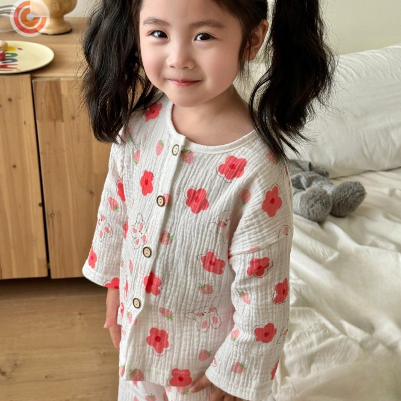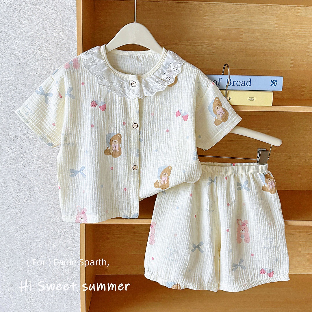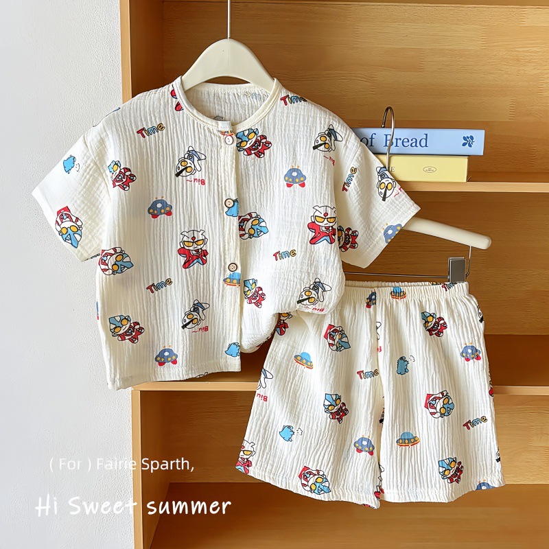 어린이 순면 파자마 베이비 클래스 더블 거즈 홈 의류 어린이 얇은 100 면 에어컨 의류 파자마 세트