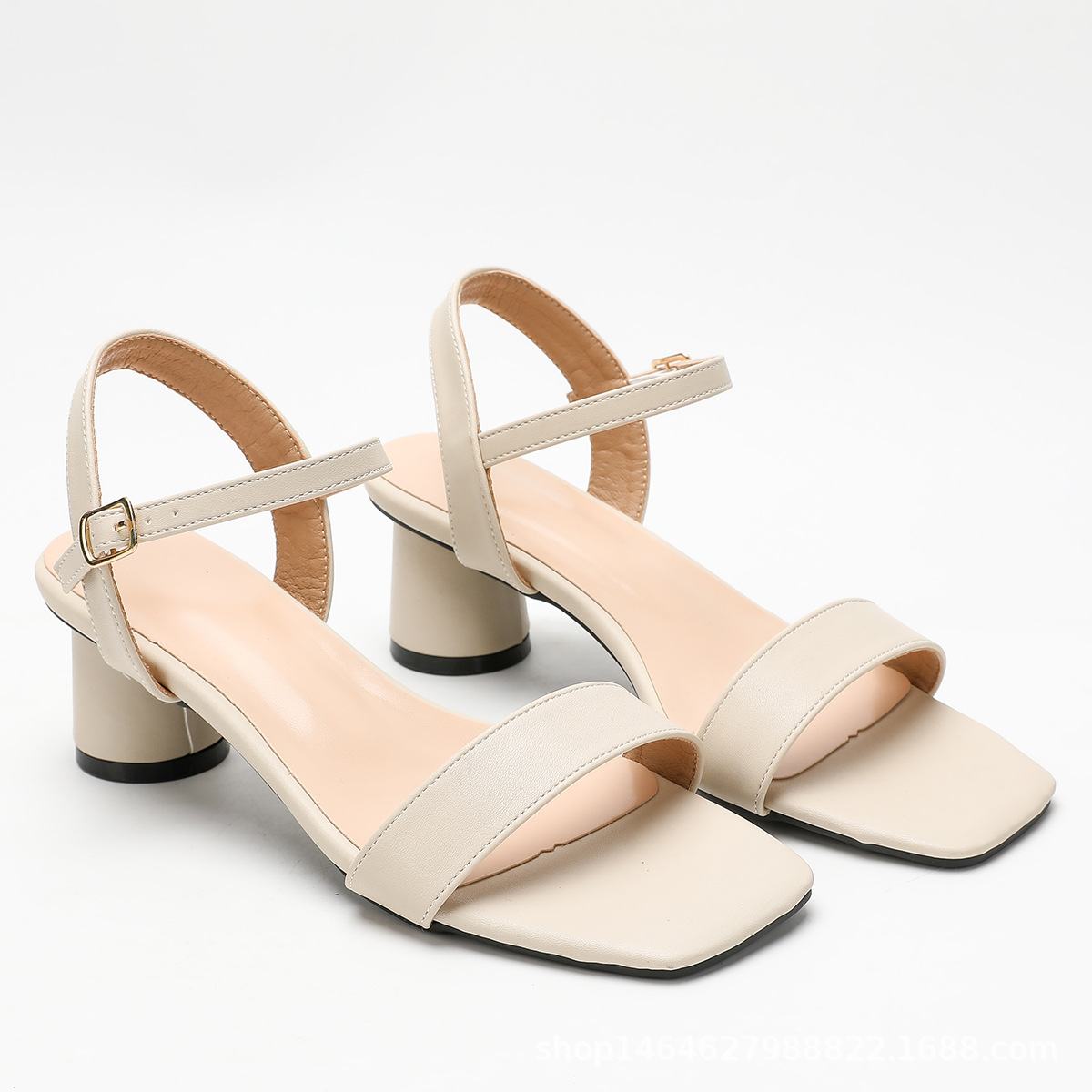 공장 아울렛 여성용 하이힐 샌들 스퀘어 발가락 두꺼운 힐 오픈 발가락 버클 패션 올매치 우아한 아우터 하이힐