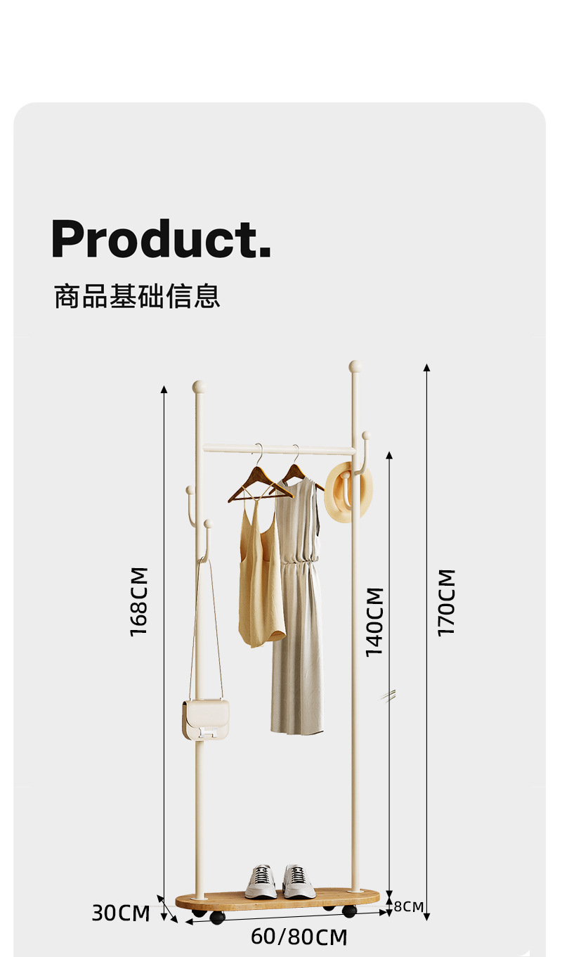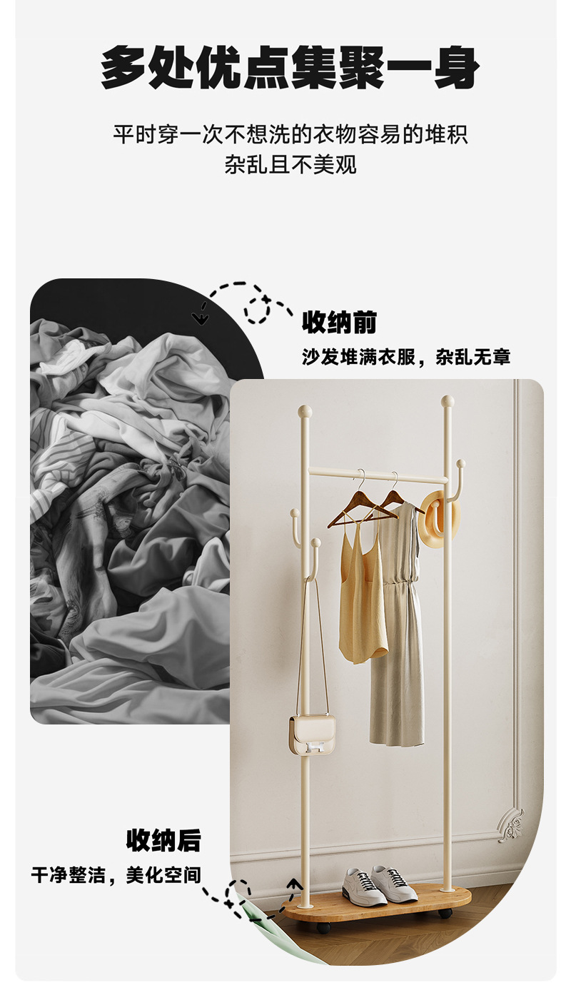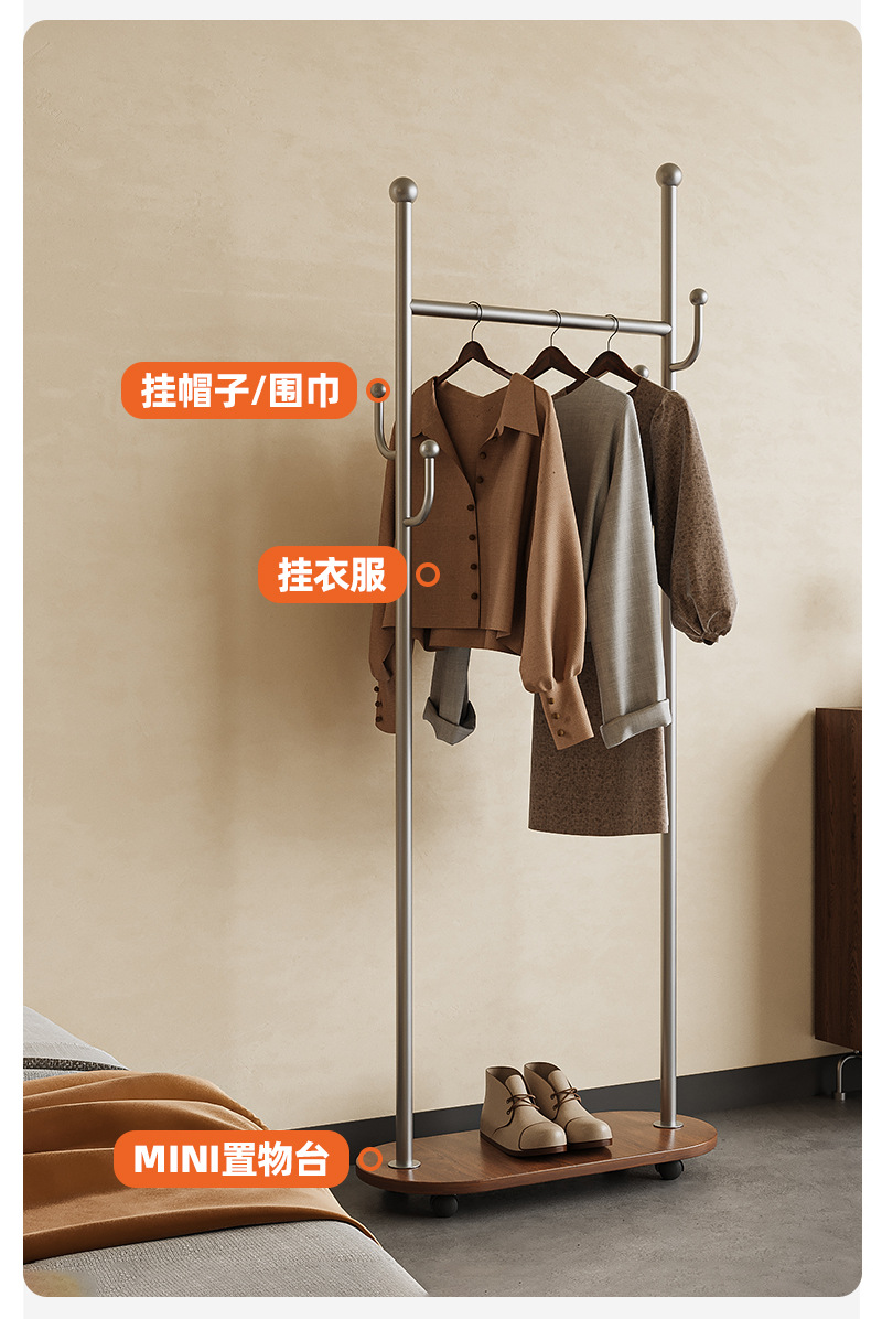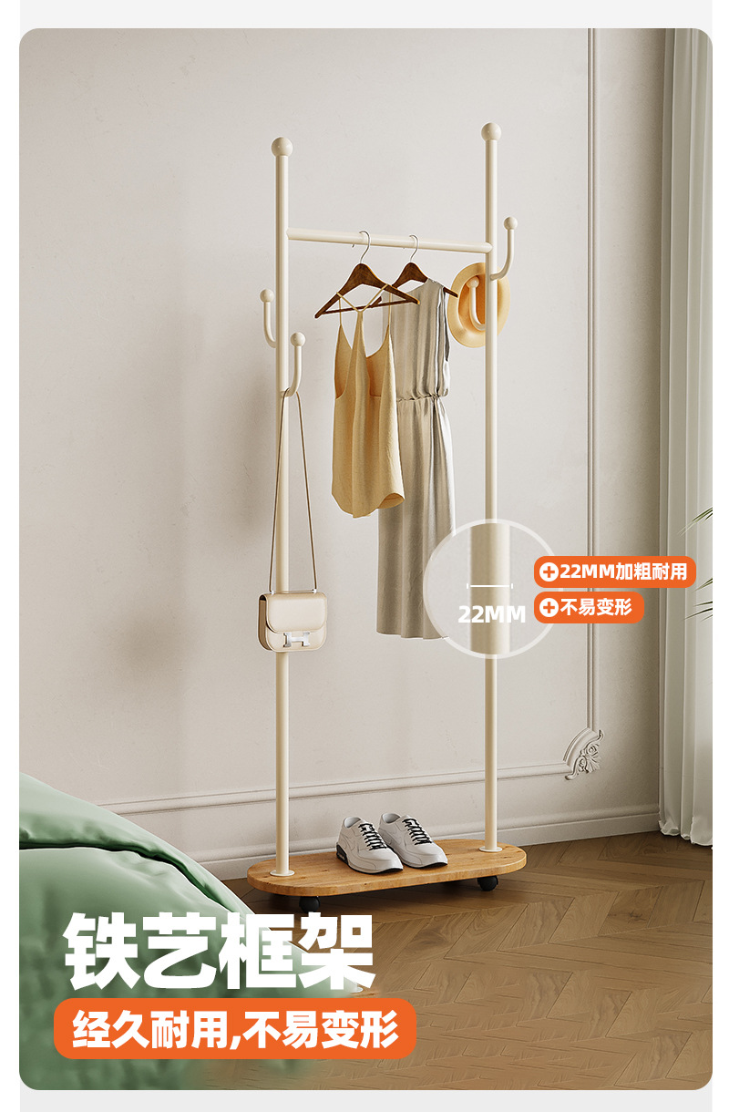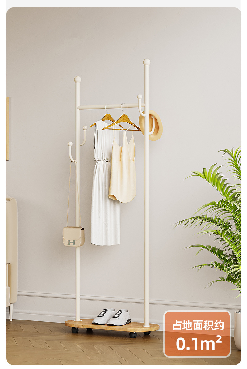 크림 스타일 간단한 바닥 코트 랙 가정용 침실 옷걸이 모바일 스토리지 의류 랙 다기능 스토리지 랙