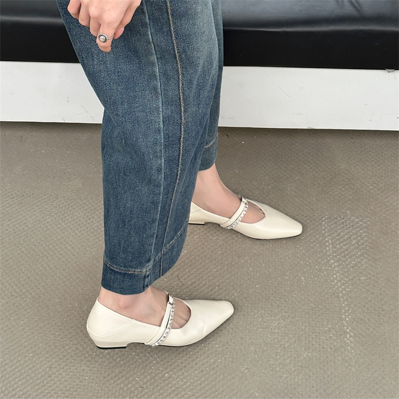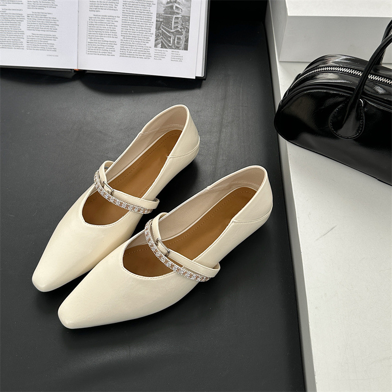 나비 호주 스타일의 뾰족한 모조 다이아몬드 신발 여성 2025 년 새 봄 얕은 입 평평한 바닥 Mary Jane 신발 신발스토어 가기