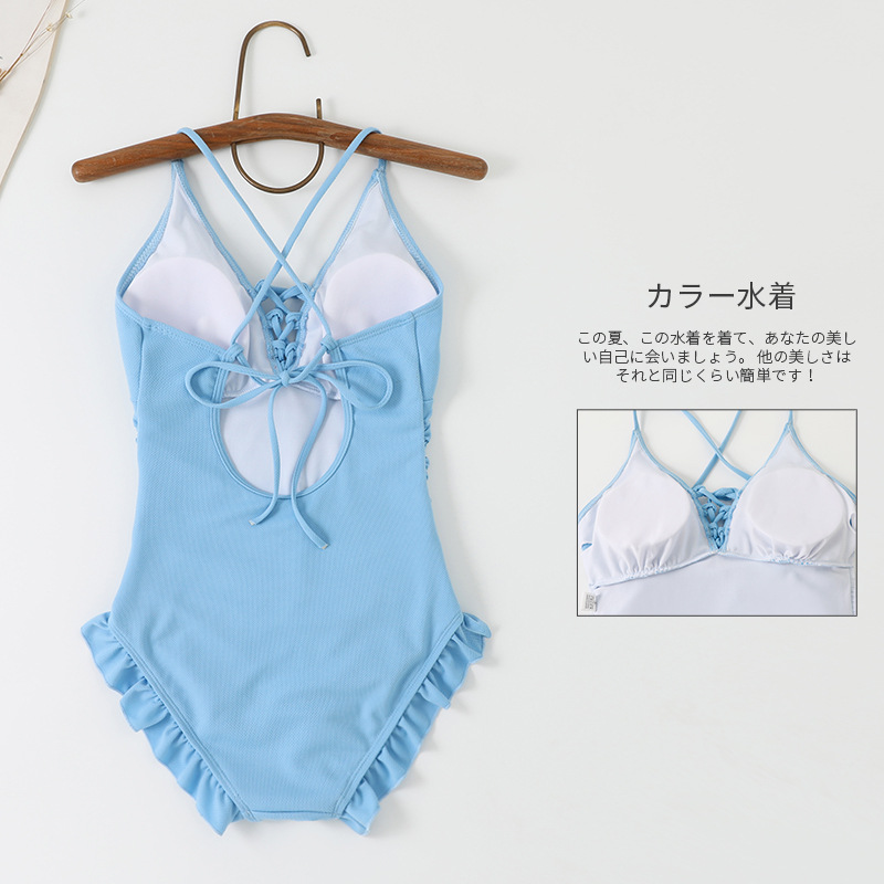 2025 순색 소녀용 원피스 러플 수영복 여학생 삼각형 온천 휴가 수영복 고탄력스토어 가기