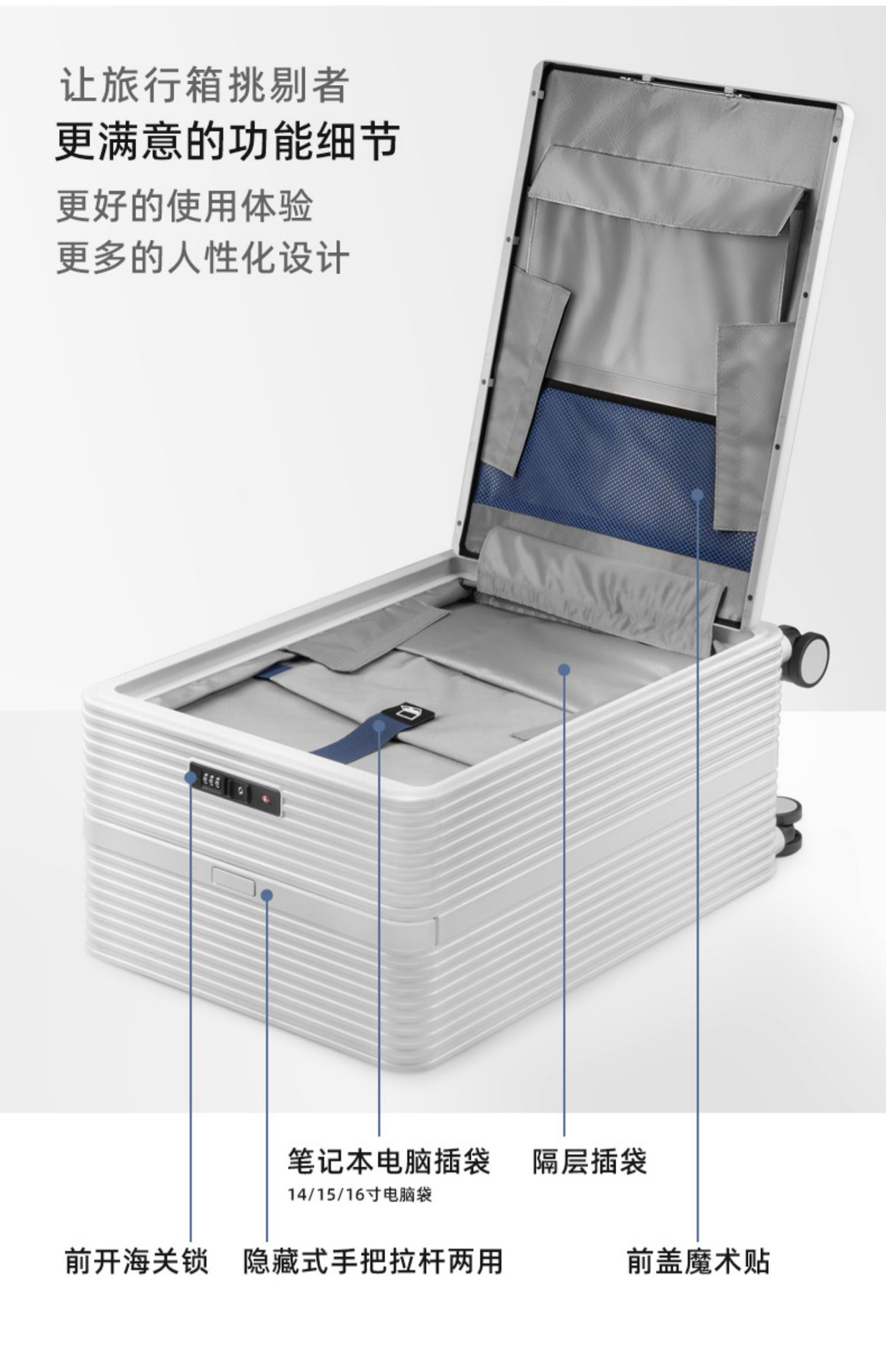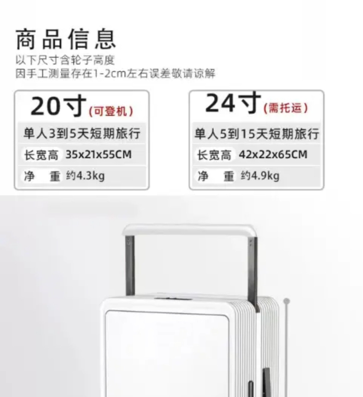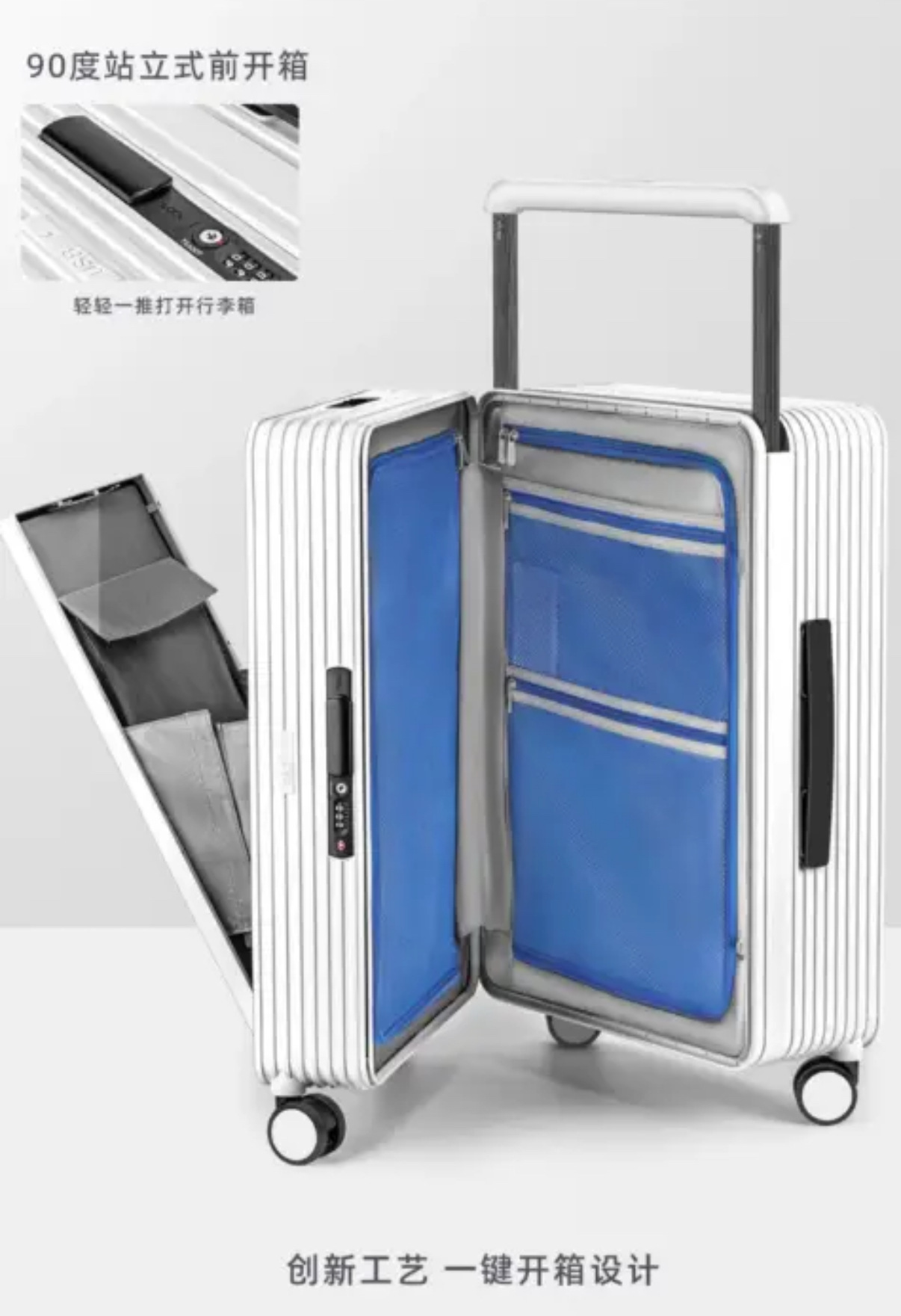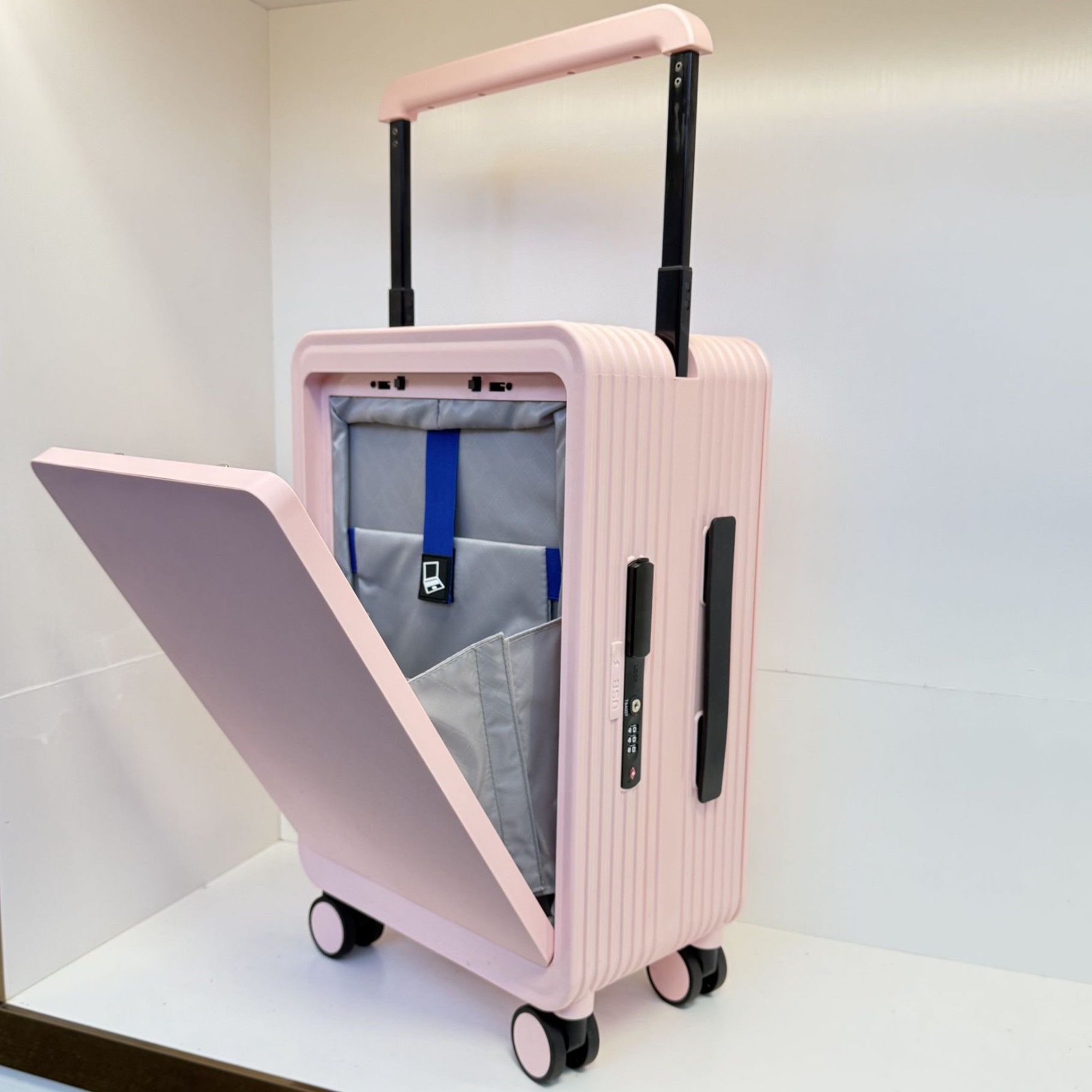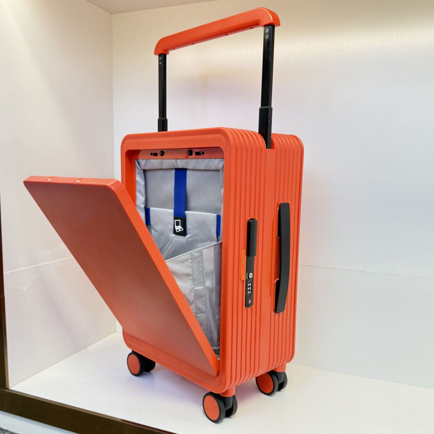 여성용 전면 개방형 와이드 트롤리 가방 크로스보더 순수 PC 범용 휠 20inch 탑승 케이스 대용량 24inch 비밀번호 상자스토어 가기