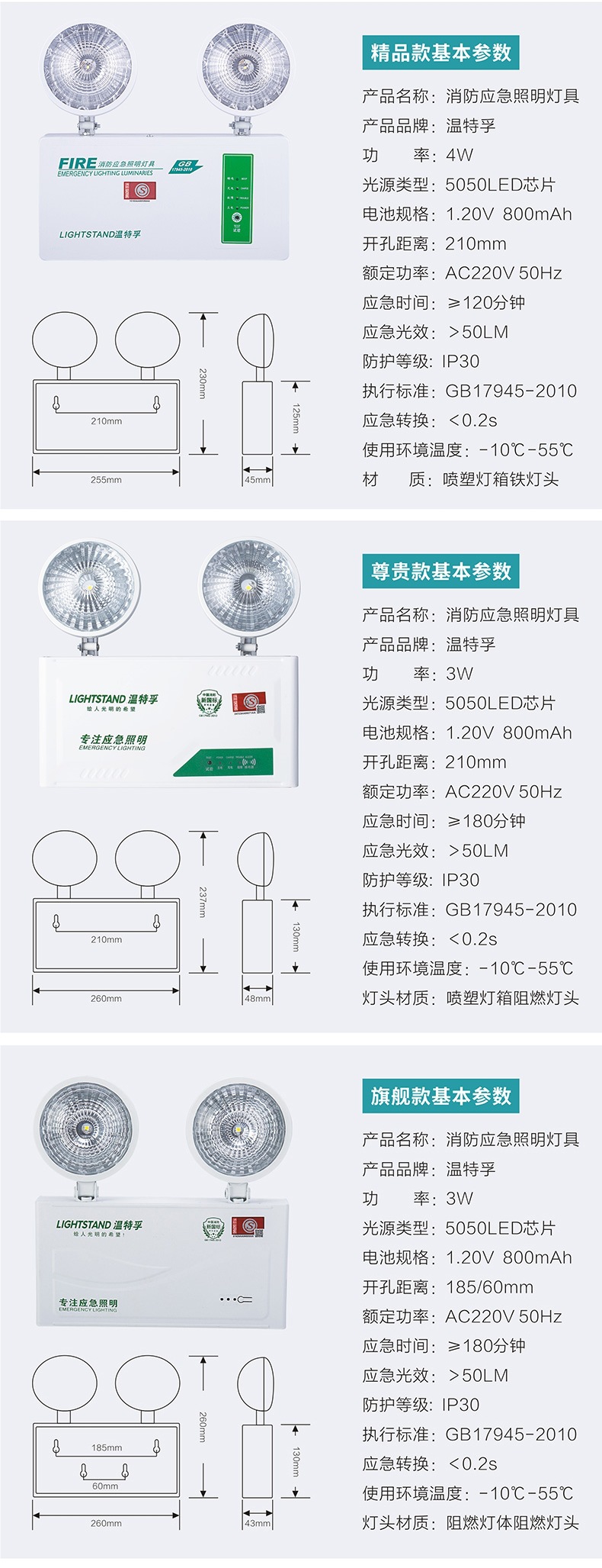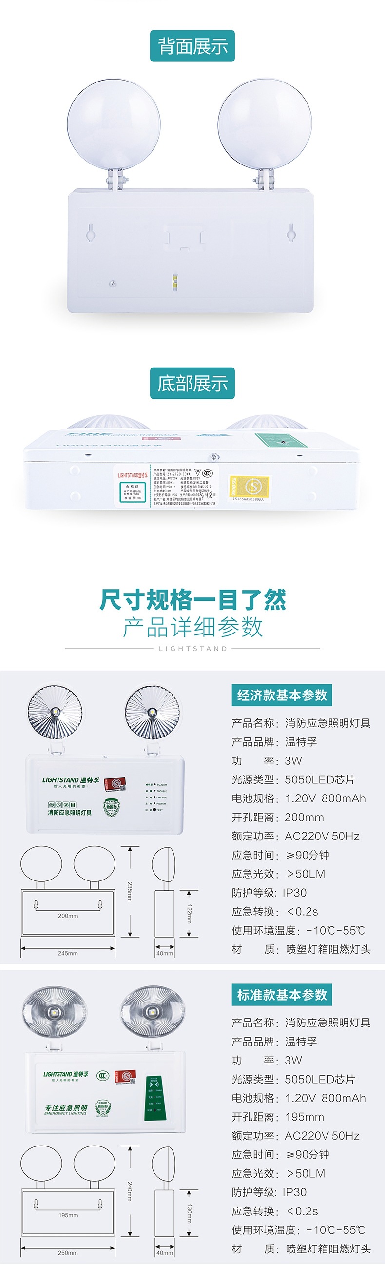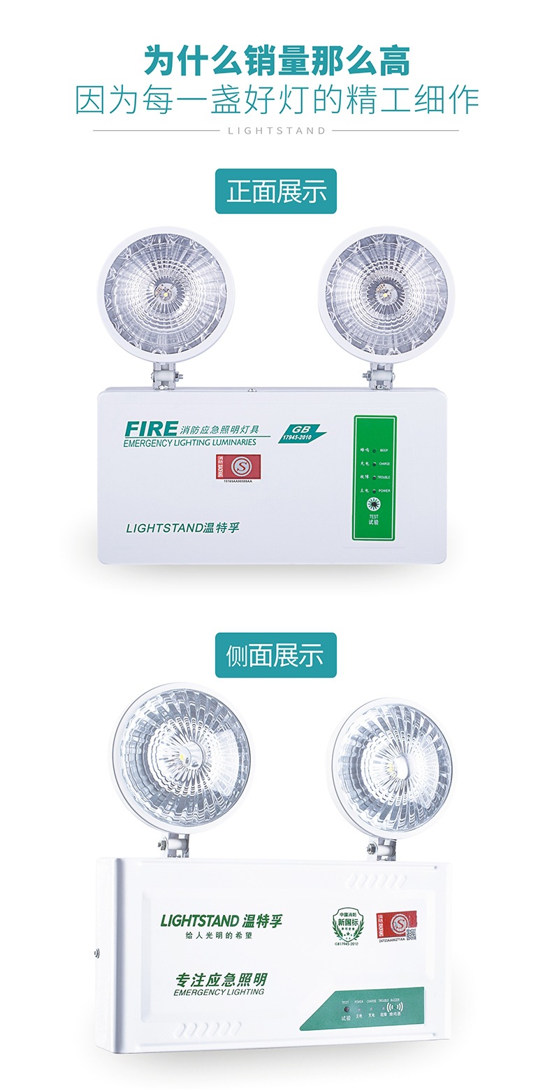 화재 비상 조명 새로운 국가 표준 주도 양두 비상 조명 안전 출구 대피 정전 가구 충전식