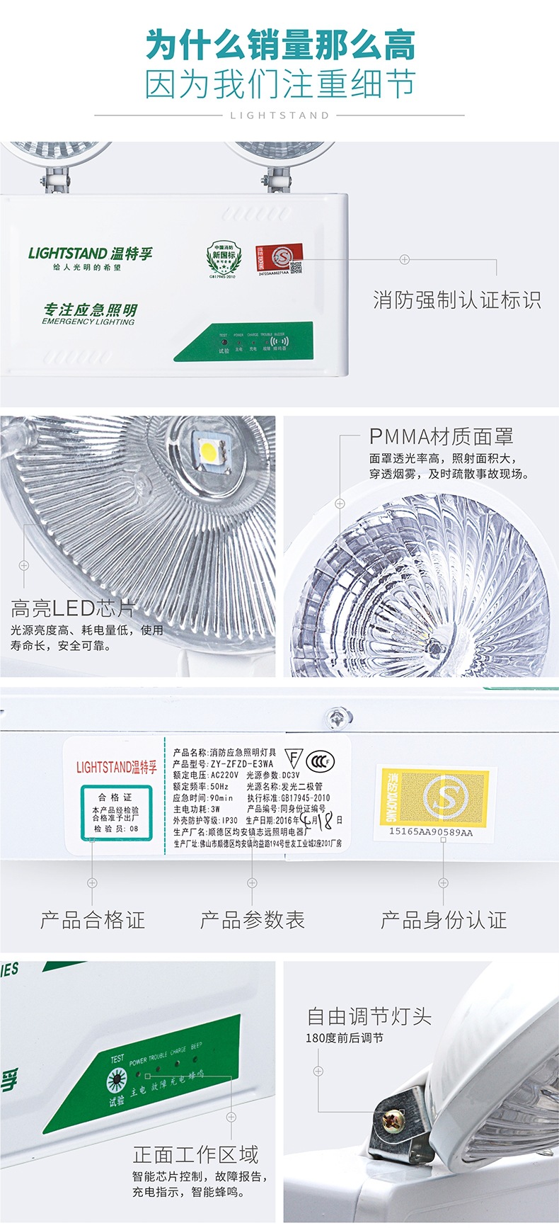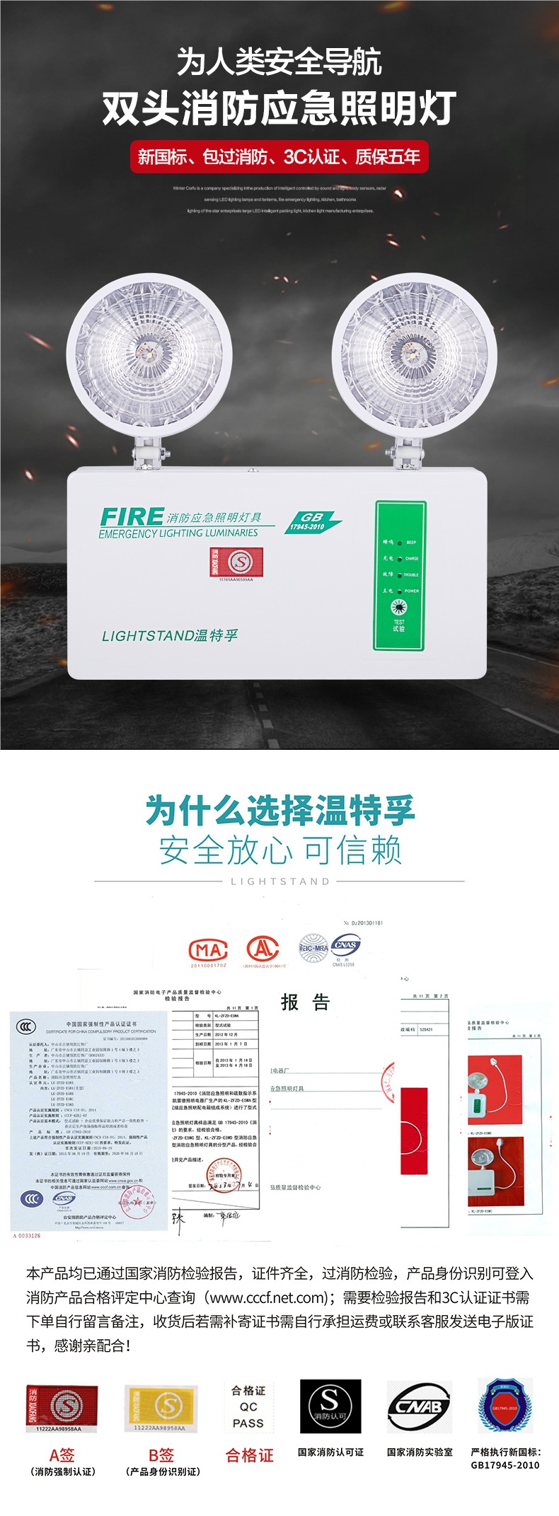 화재 비상 조명 새로운 국가 표준 주도 양두 비상 조명 안전 출구 대피 정전 가구 충전식스토어 가기