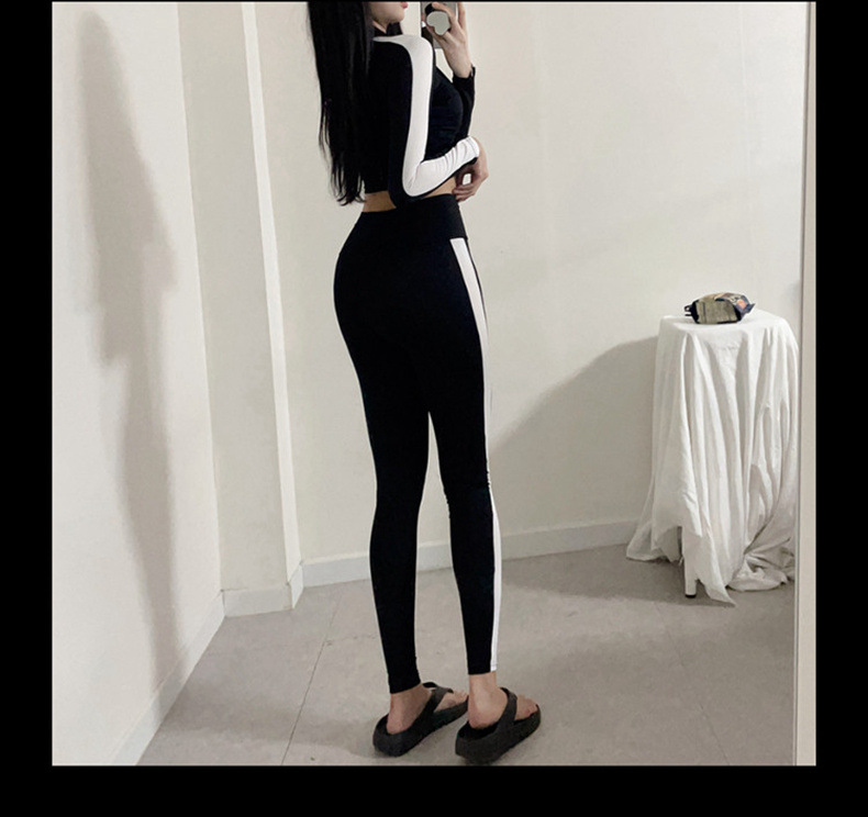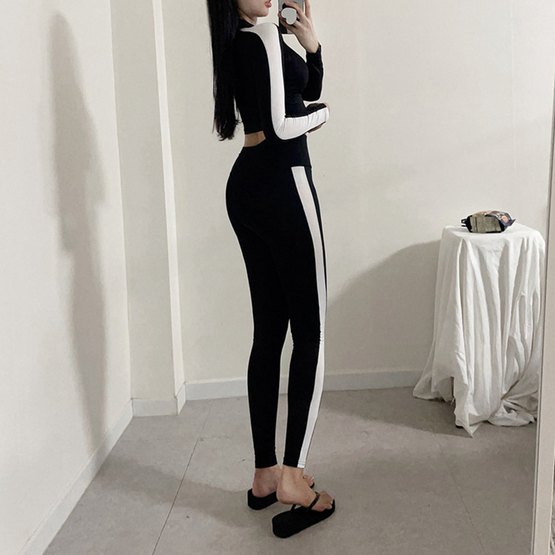 2025 새로운 4 피스 한국식 슬림 핏 슬림 핏 흑백 컬러 블록 수영복 보수적 인 선 스크린 분할 수영복 여성