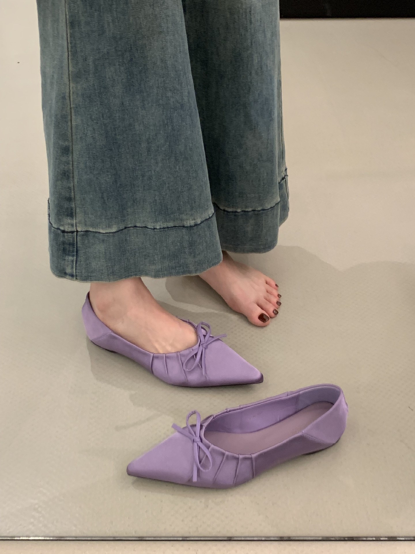 프랑스 보라색 내부 높이 포인팅 신발 여성의 2025 봄 기질 활 요정 부드러운 메리 제인 신발스토어 가기