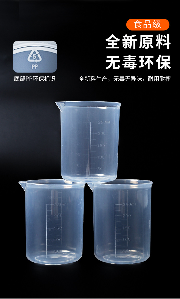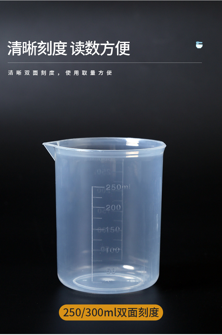 250ml 두꺼운 플라스틱 비커 스케일 측정 실린더 300 ml 우유 차 가게 베이킹 PP 스케일 컵 실험 장비
