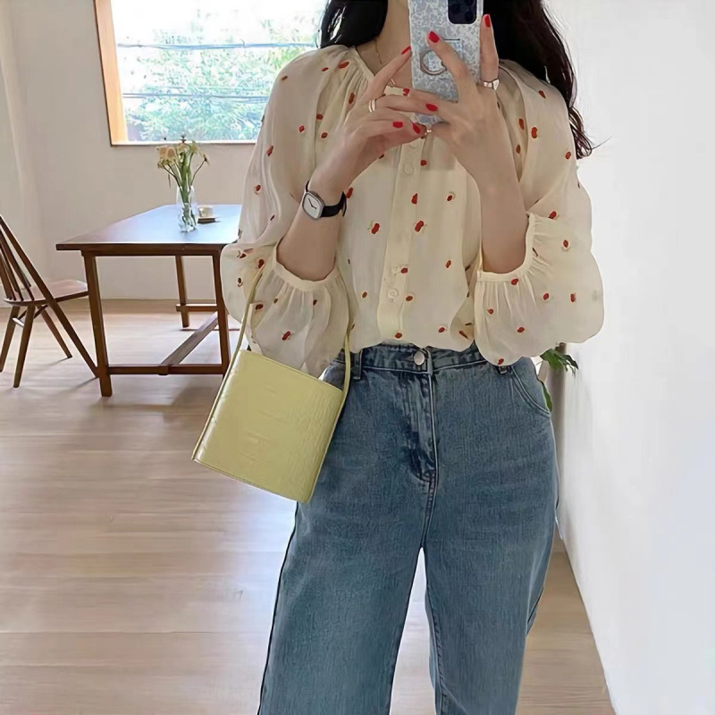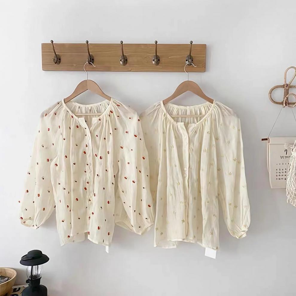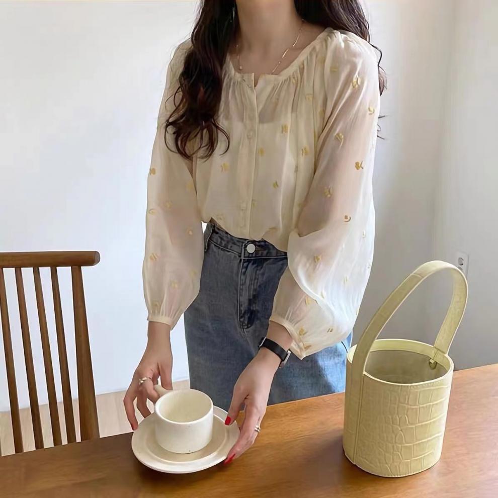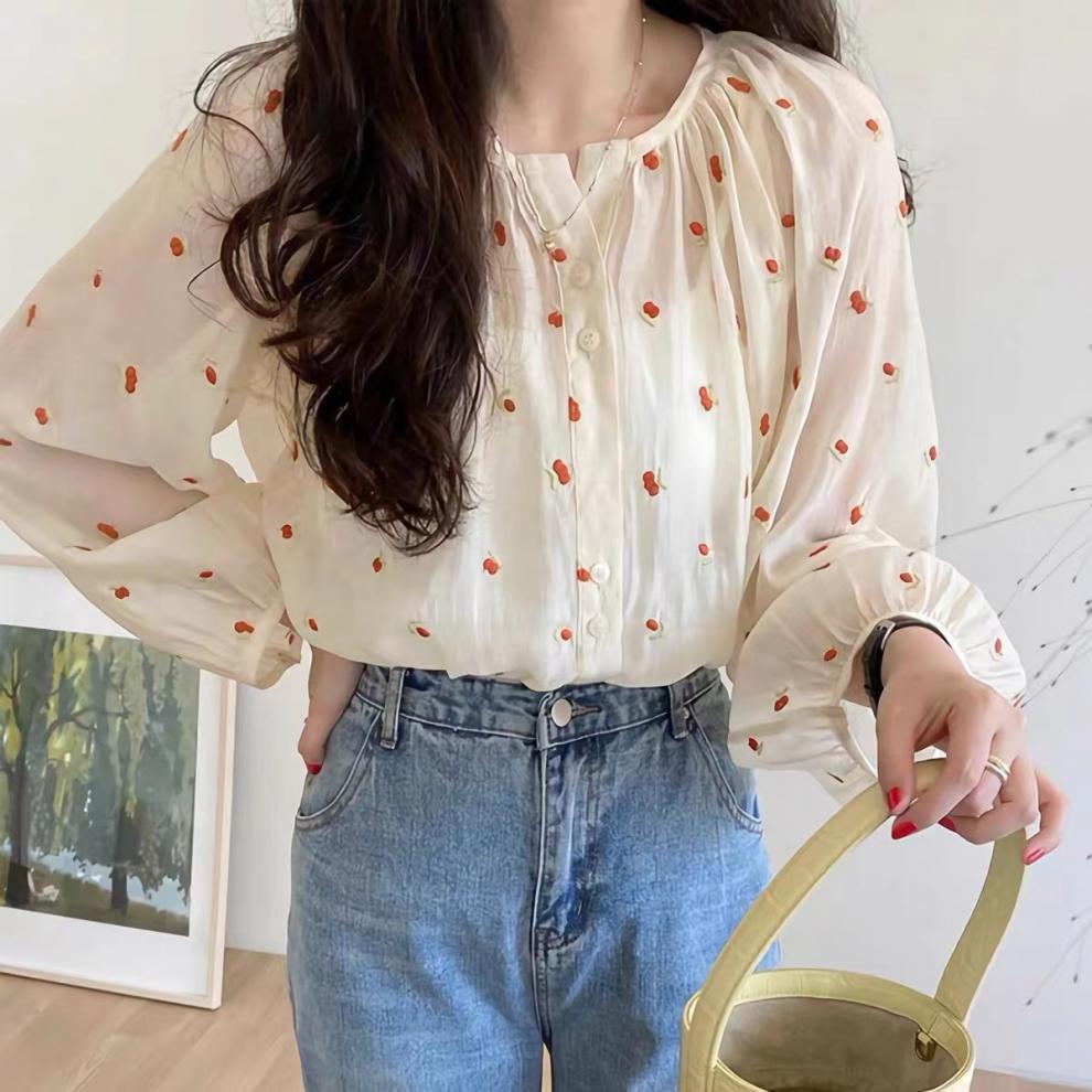 한국식 세련된 수제 수제 긴 소매 셔츠 여성용 여름 얇은 셔츠 라운드 넥 슬림 핏 느슨한 선 스크린 탑스토어 가기