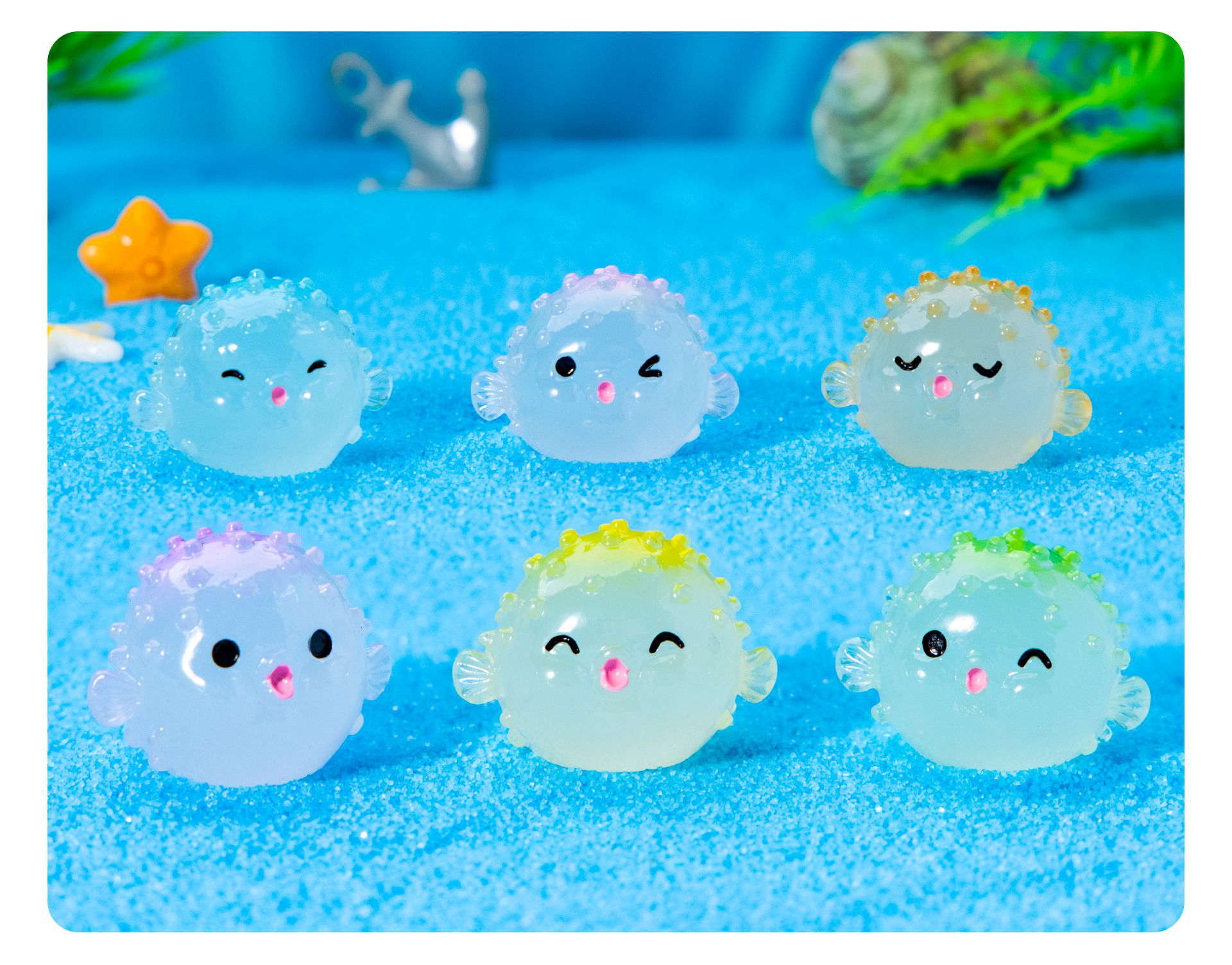 새로운 해양 장식품 빛나는 Puffer 마이크로 풍경 물고기 탱크 작은 장식품 만화 Puffer DIY 수지 장식품