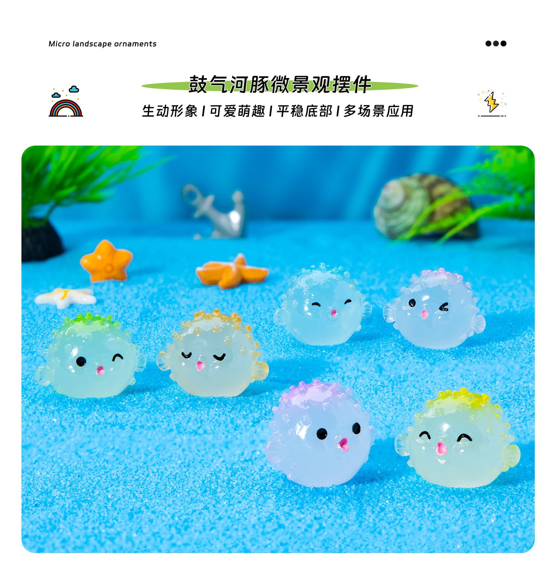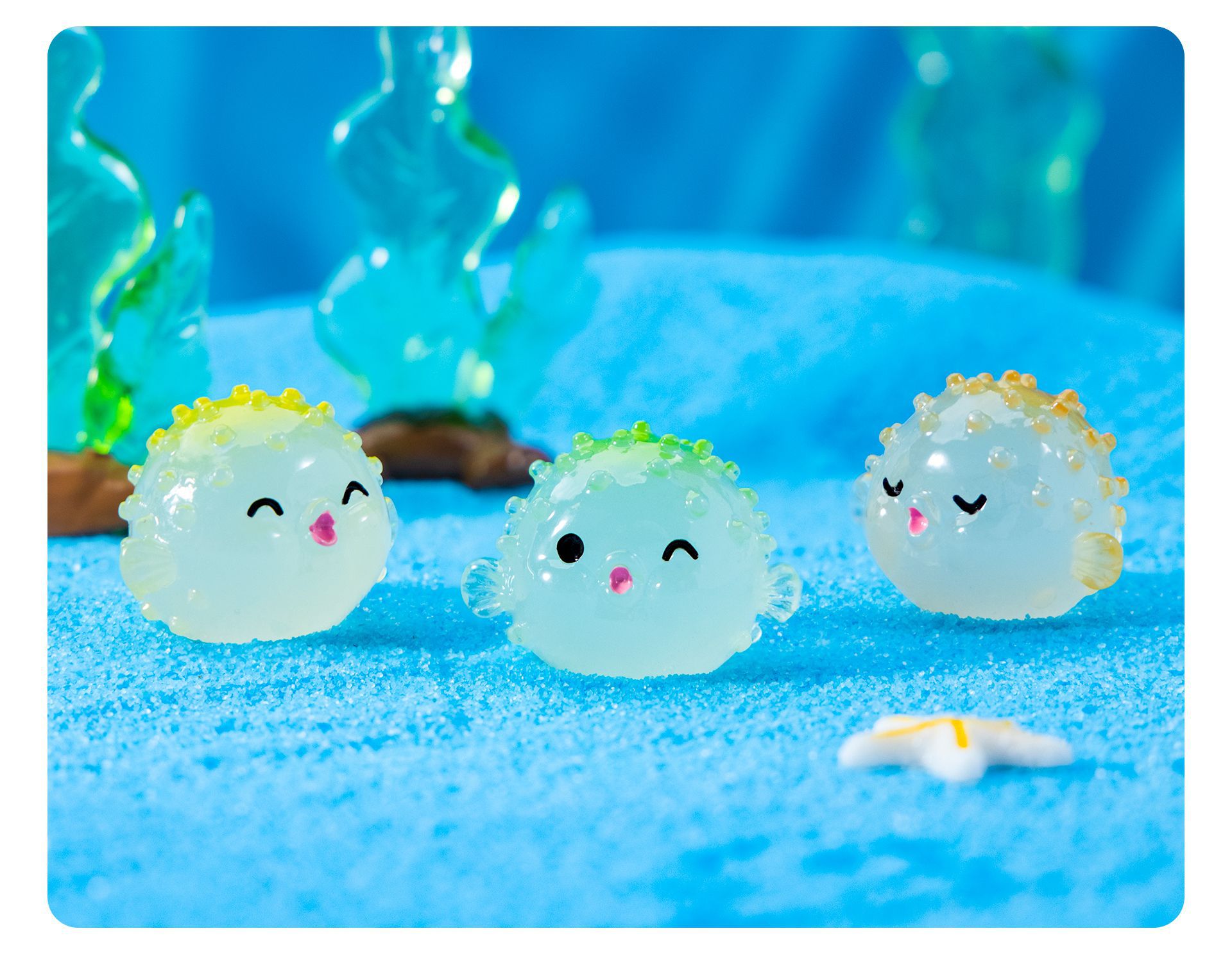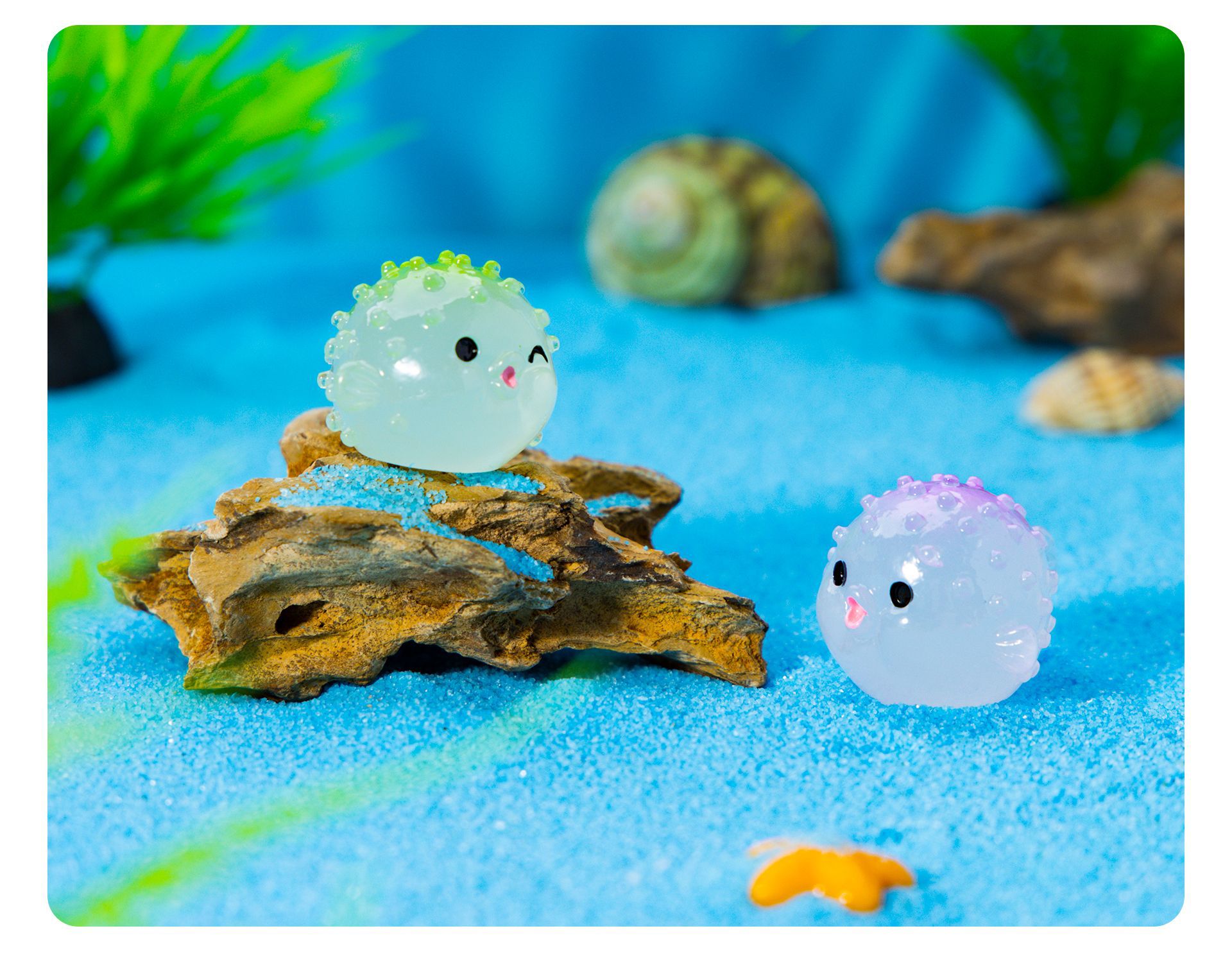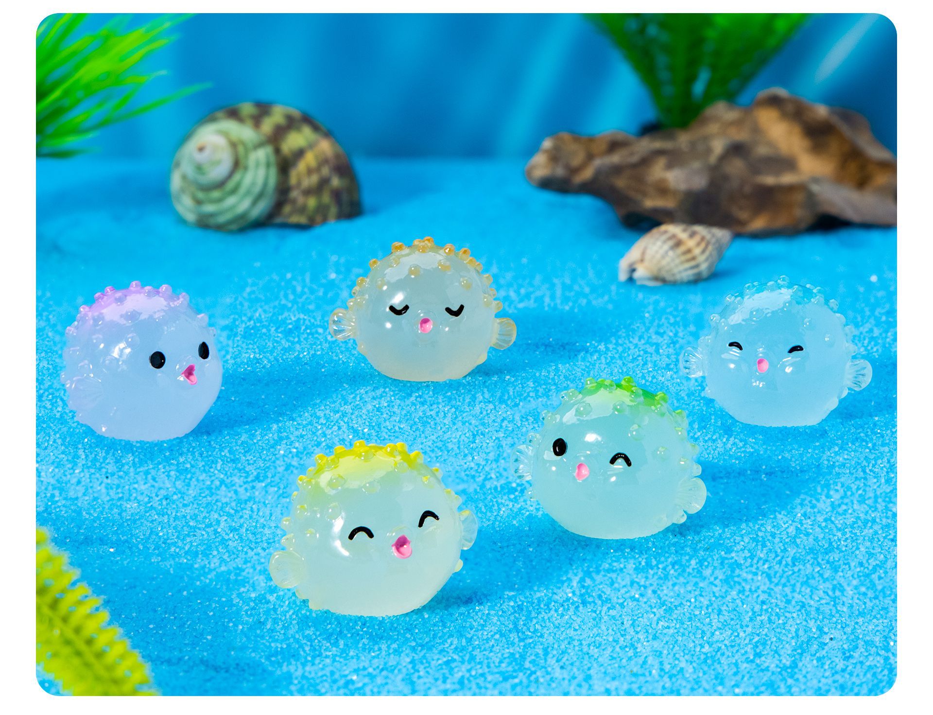 새로운 해양 장식품 빛나는 Puffer 마이크로 풍경 물고기 탱크 작은 장식품 만화 Puffer DIY 수지 장식품스토어 가기
