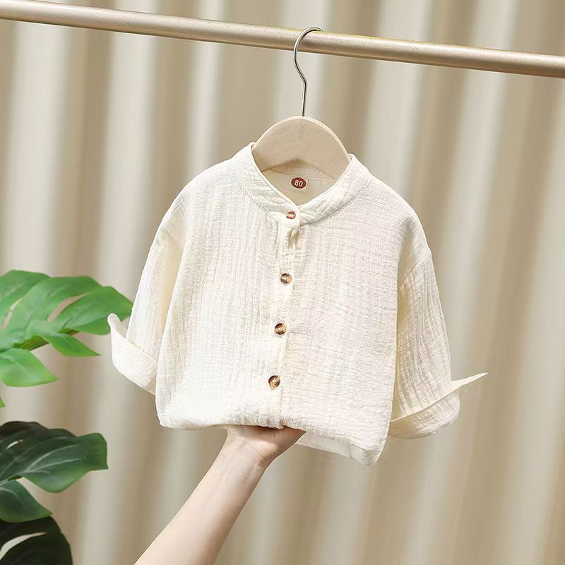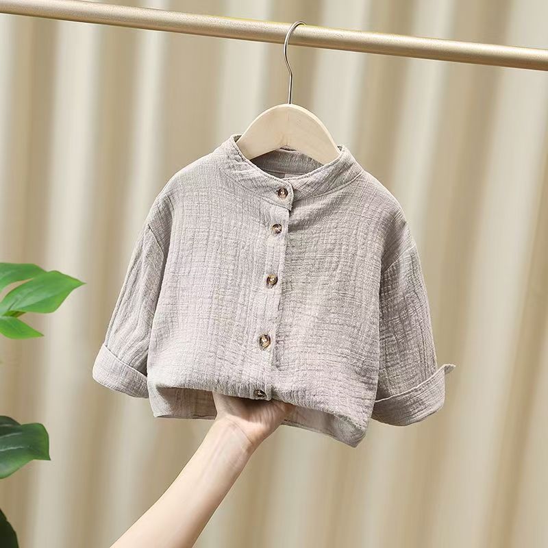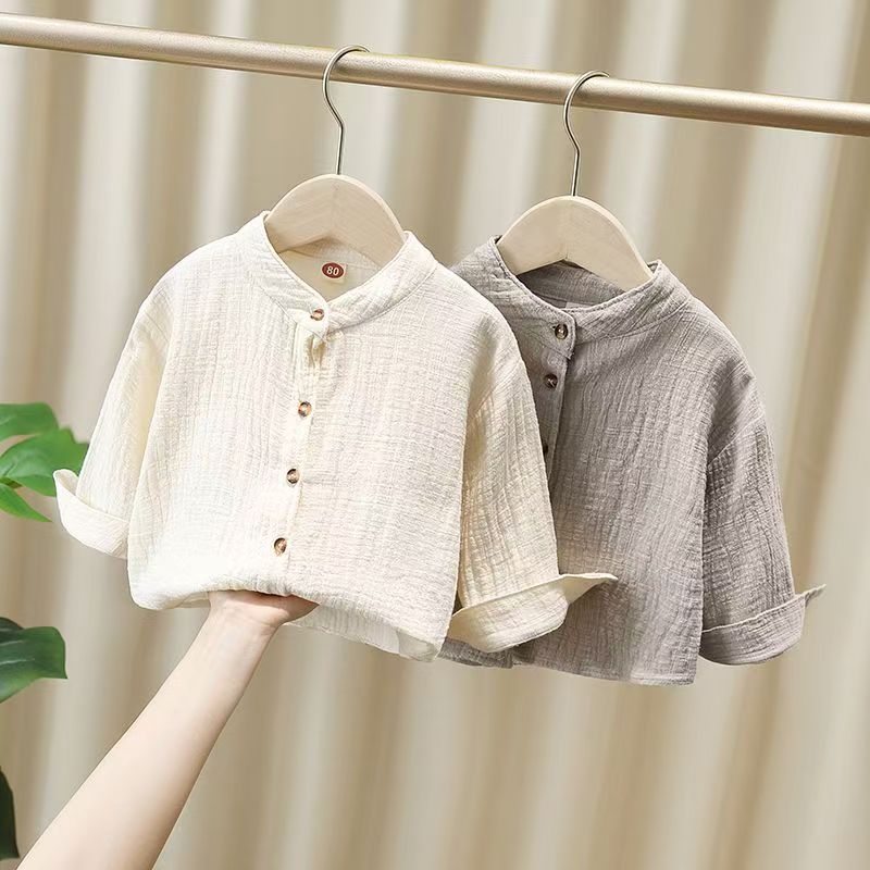 중국 스타일 면화와 리넨 셔츠 아기 소년의 셔츠 봄과 가을 긴 소매 어린이 가을 옷 세로 칼라 소년의 가을 프라이드 스트리트 탑스토어 가기