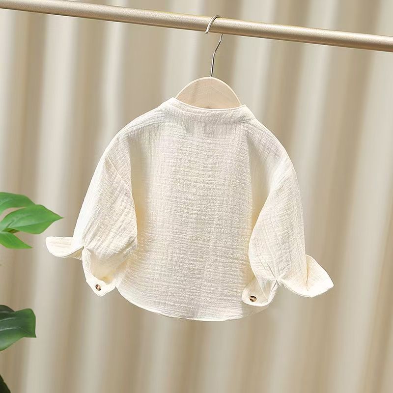 중국 스타일 면화와 리넨 셔츠 아기 소년의 셔츠 봄과 가을 긴 소매 어린이 가을 옷 세로 칼라 소년의 가을 프라이드 스트리트 탑