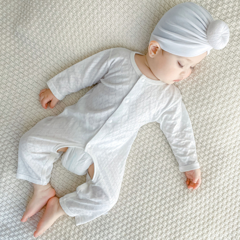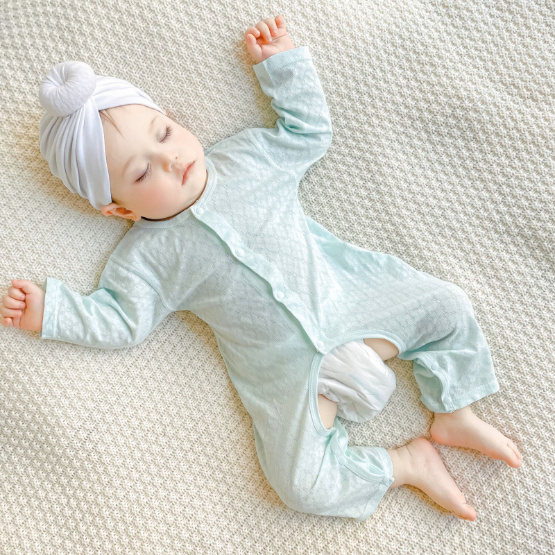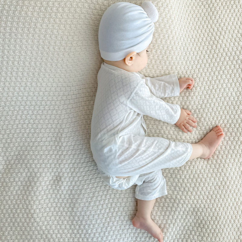 신생아 긴팔 바지 면 파자마 아기 쿨 메쉬 등반 세트 아기 여름 얇은 오픈 길이 점프 수트