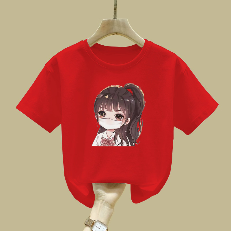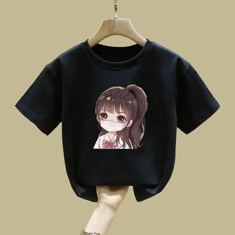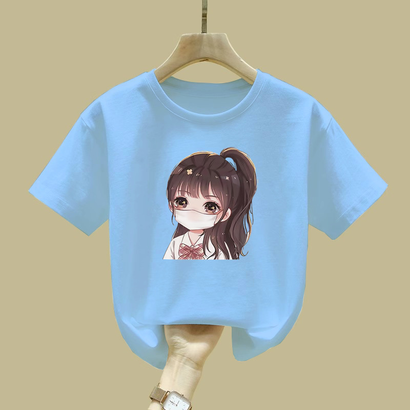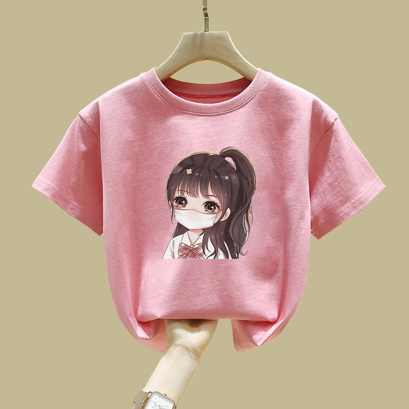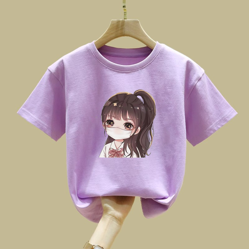 2367 # 코튼 걸스 반팔 티셔츠 2025 여름 새로운 서양식 캐주얼 탑 어린이 만화 반소매 여름 원피스