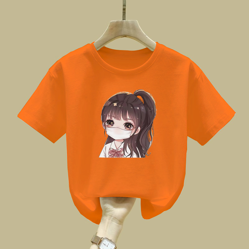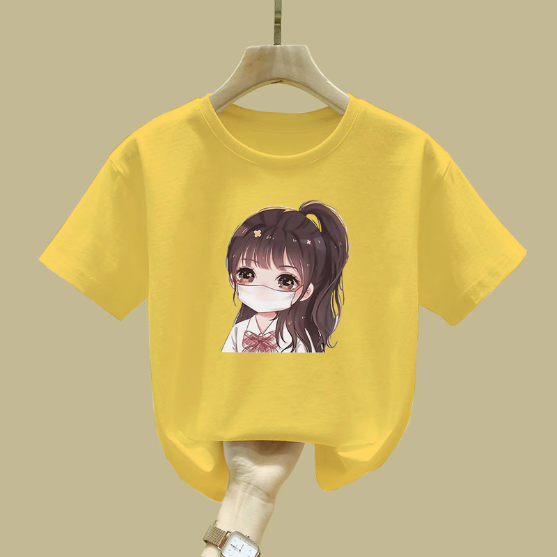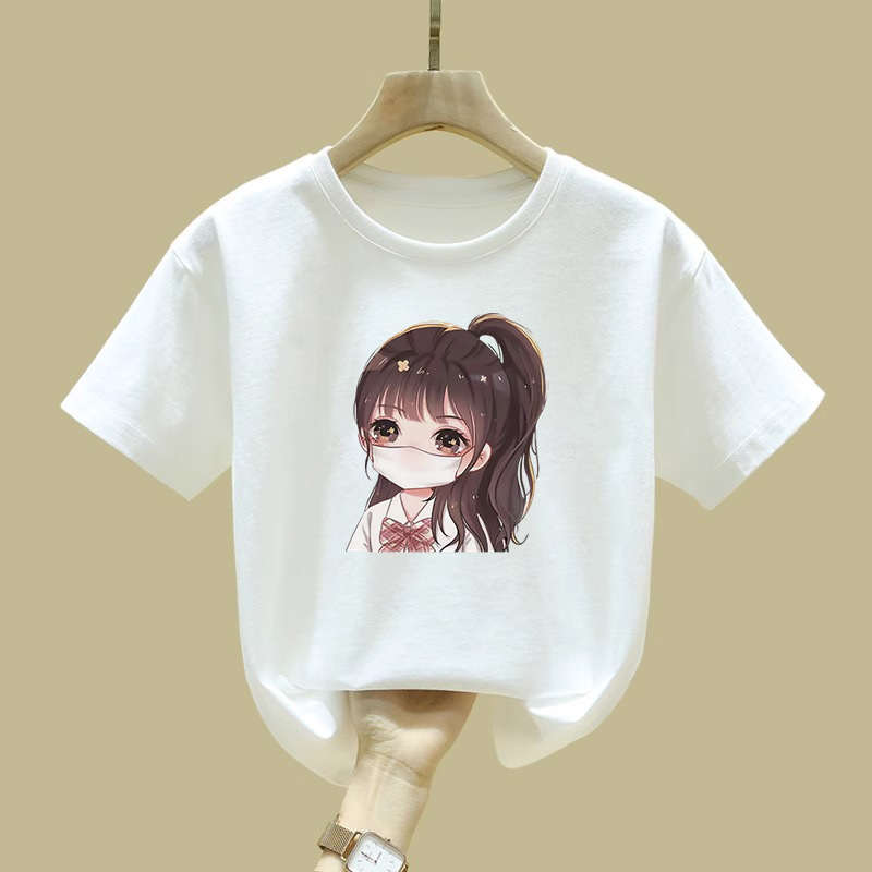 2367 # 코튼 걸스 반팔 티셔츠 2025 여름 새로운 서양식 캐주얼 탑 어린이 만화 반소매 여름 원피스스토어 가기