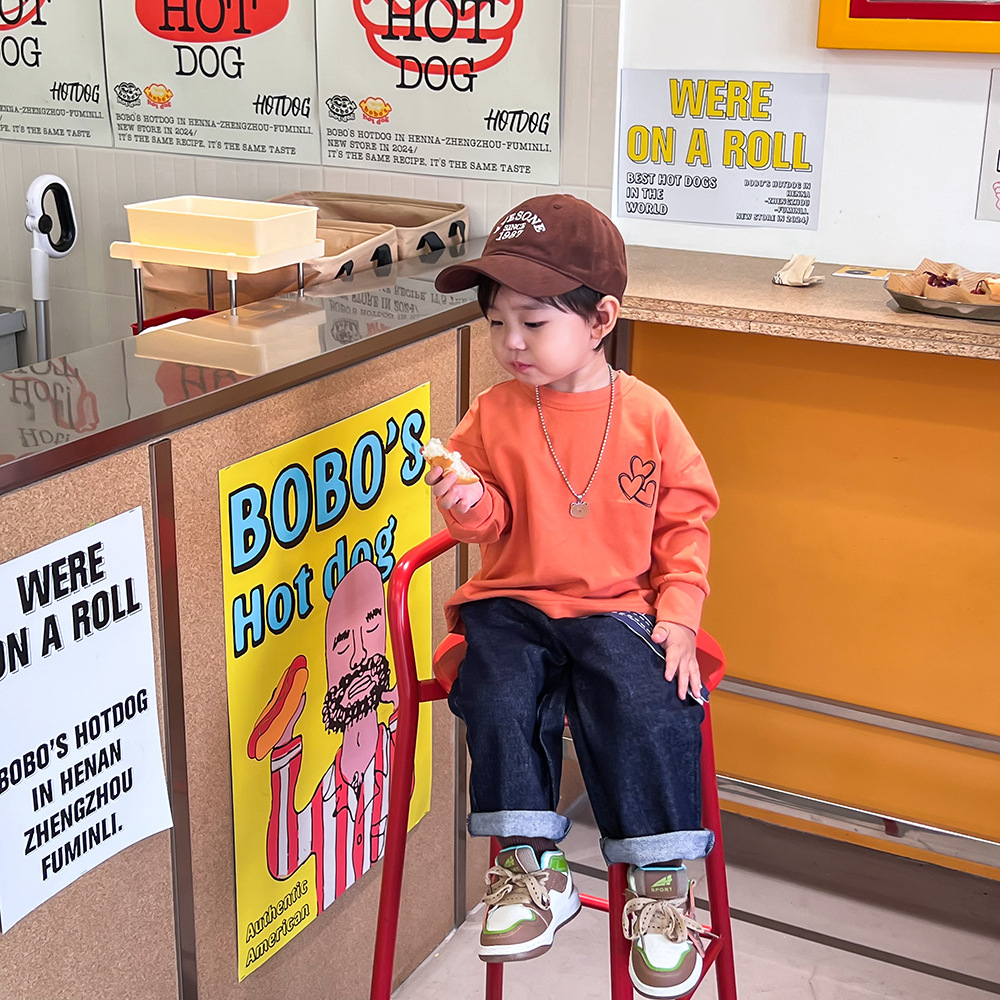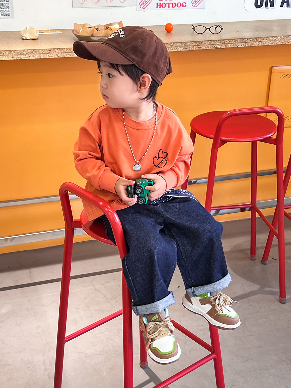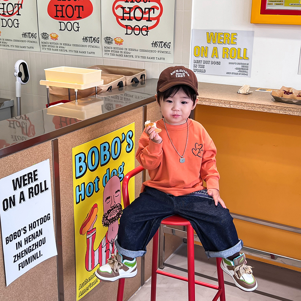봄 어린이 청바지 간단한 한국 스타일 소년과 소녀 액티브 데님 바지 아기 느슨한 스트레이트 캐주얼 바지스토어 가기