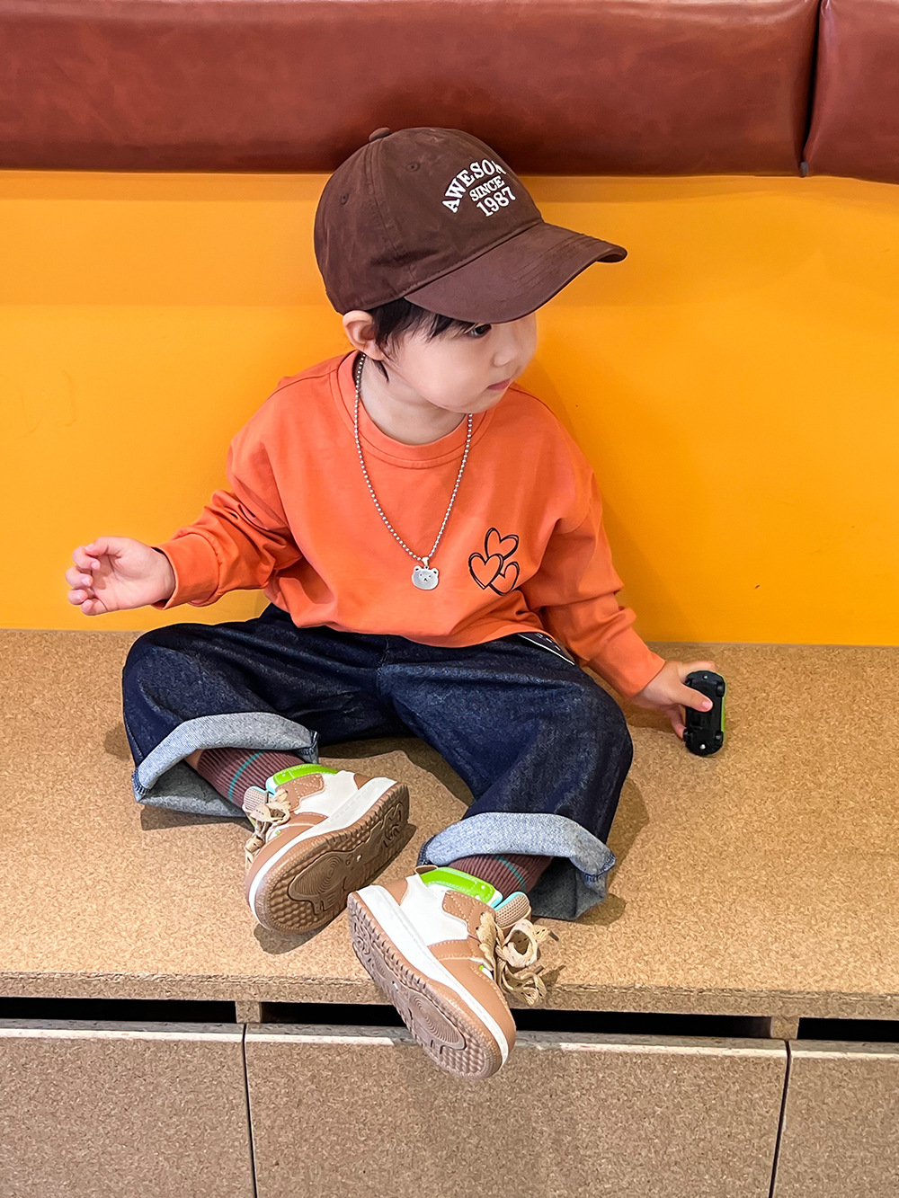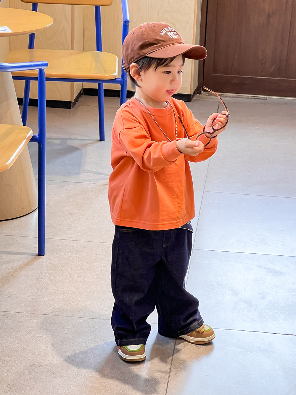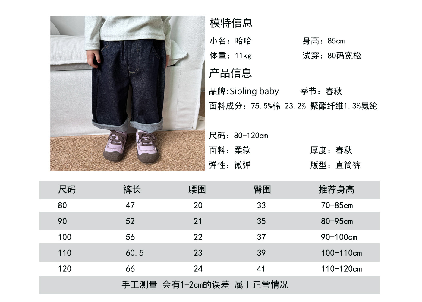 봄 어린이 청바지 간단한 한국 스타일 소년과 소녀 액티브 데님 바지 아기 느슨한 스트레이트 캐주얼 바지스토어 가기