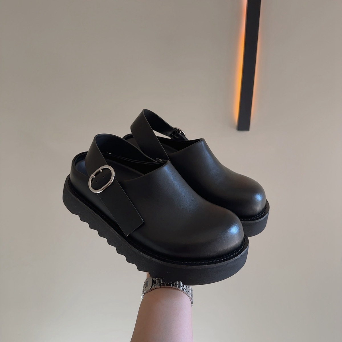 부드러운 가죽 버전 ~ 두꺼운 바닥 보켄 신발 여성의 2024 새로운 여름 큰 머리 신발 외부 빈 캐주얼 바오터우 샌들 및 슬리퍼 착용