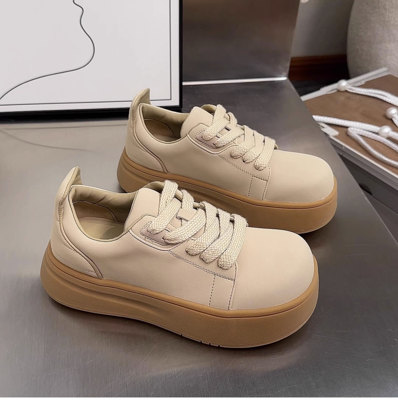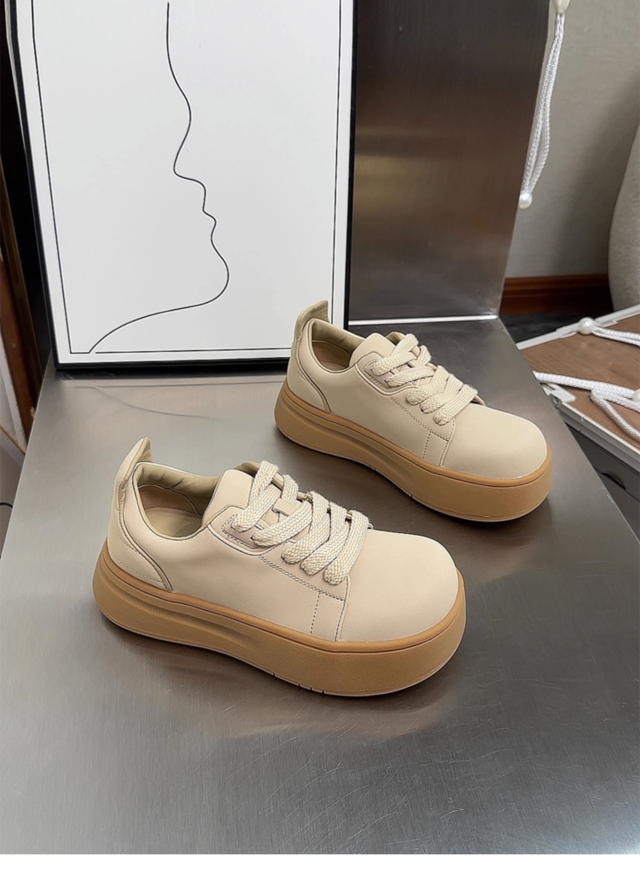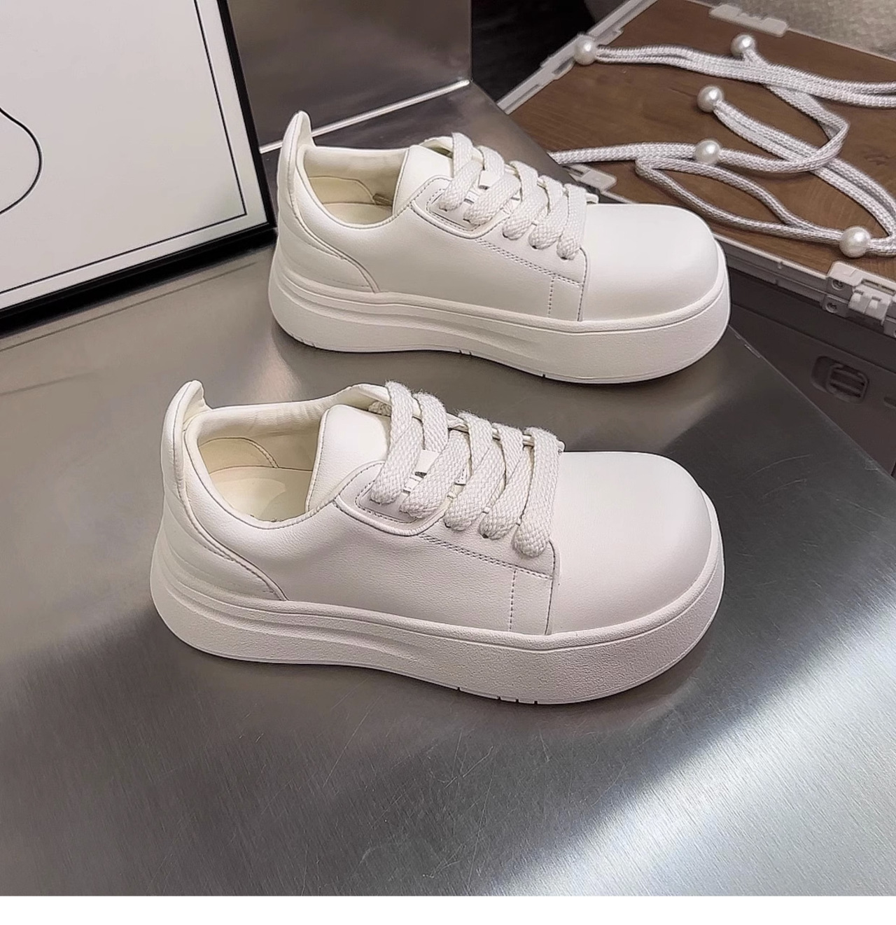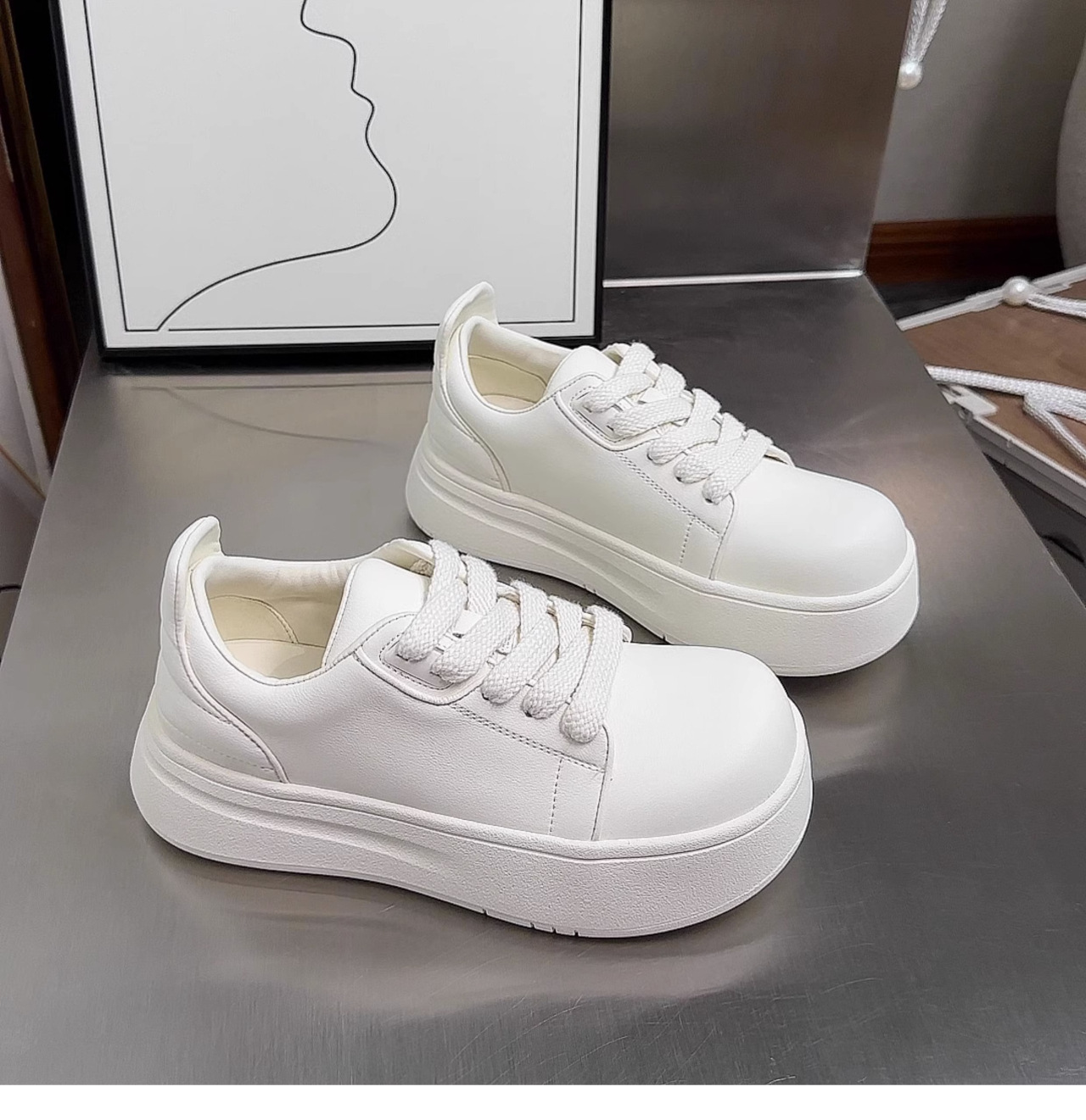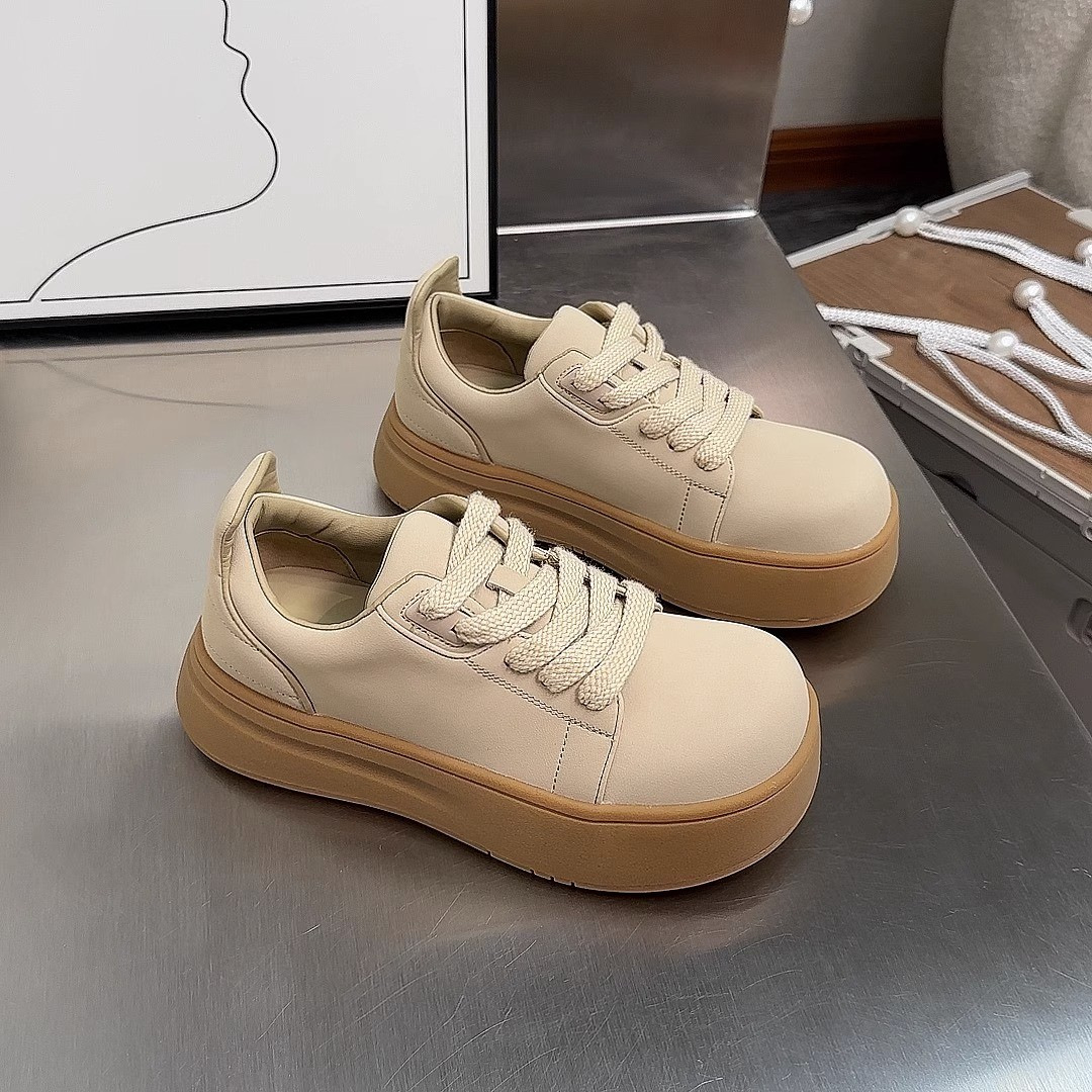 Oufan 소프트 가죽 두꺼운 단독 큰 머리 흰색 신발 여성의 2025 봄 새로운 높은 덩어리 올 매치 캐주얼 스니커즈 여성 신발