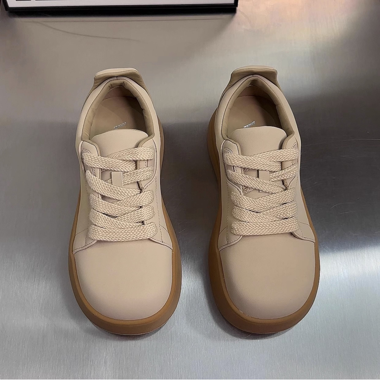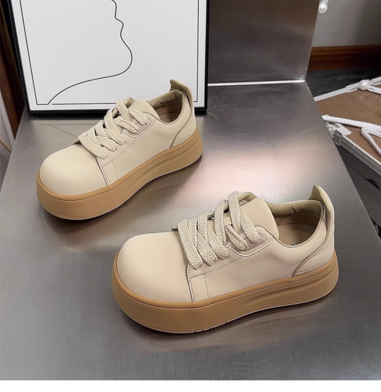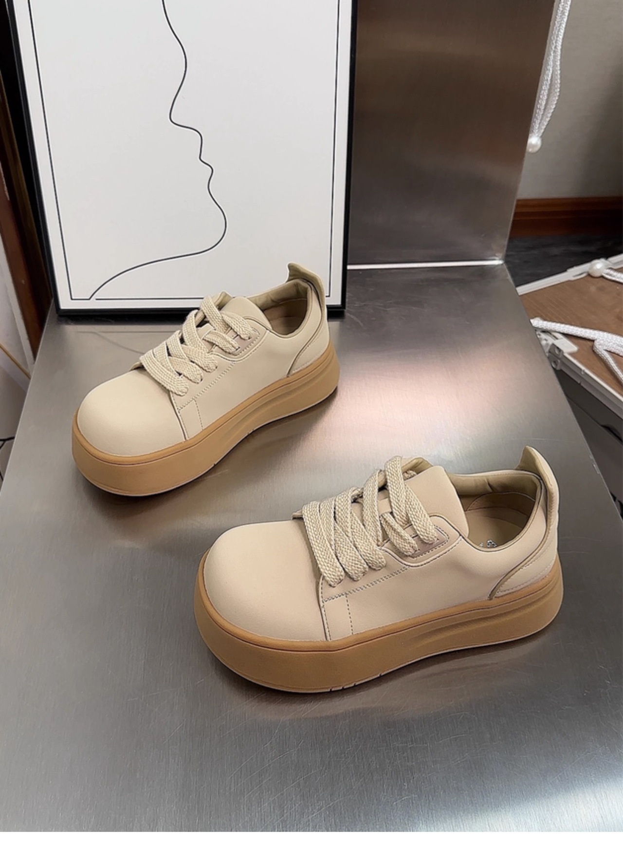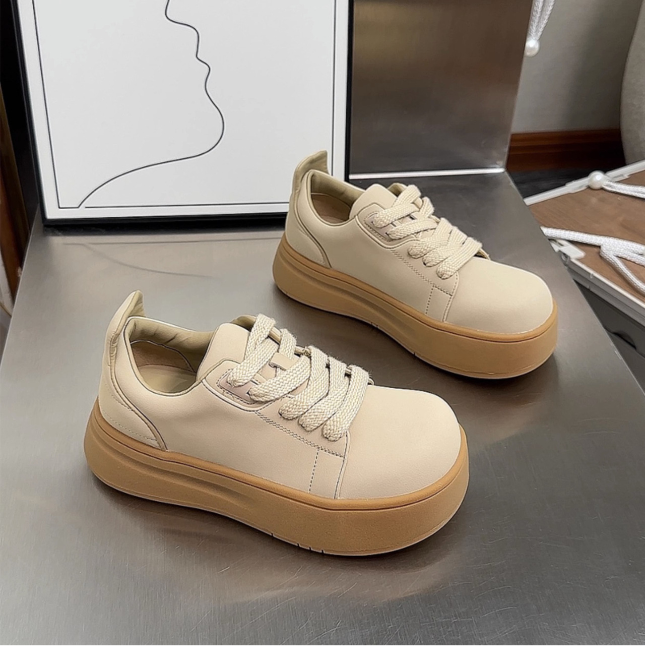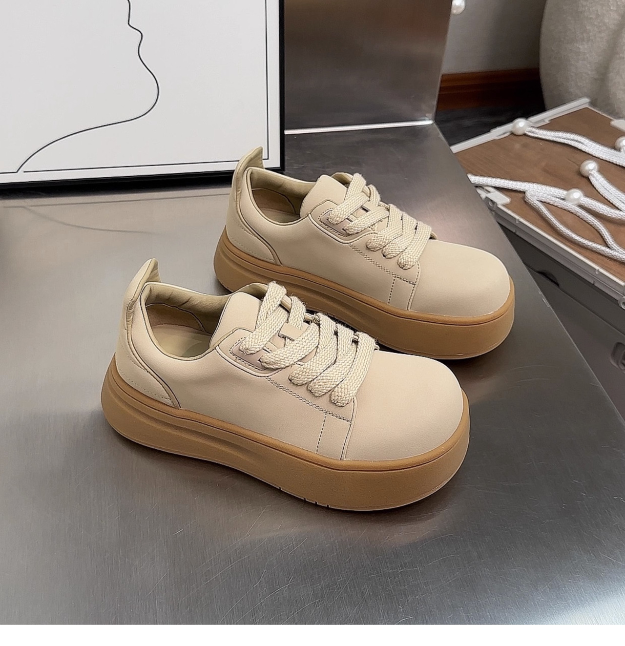 Oufan 소프트 가죽 두꺼운 단독 큰 머리 흰색 신발 여성의 2025 봄 새로운 높은 덩어리 올 매치 캐주얼 스니커즈 여성 신발