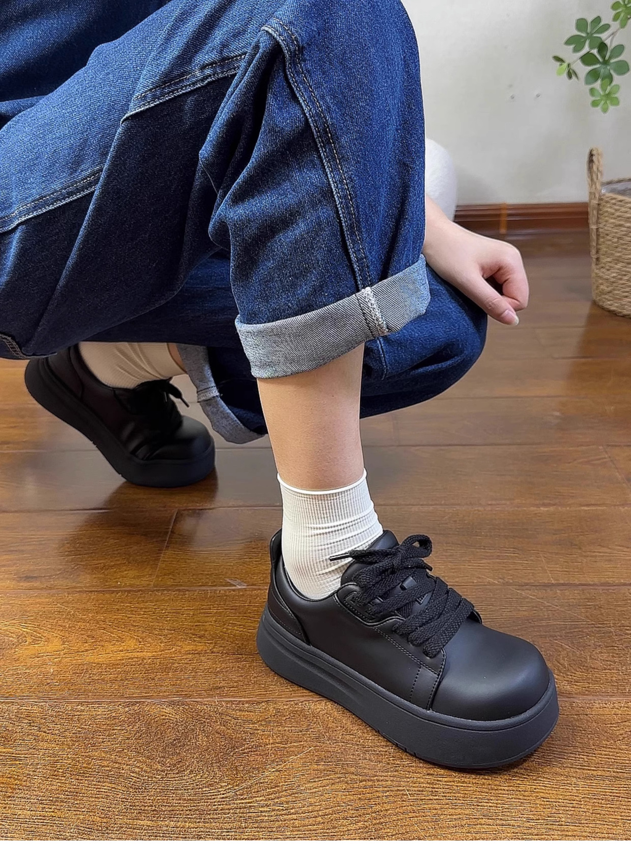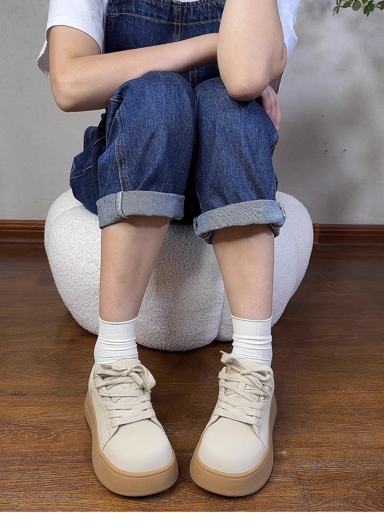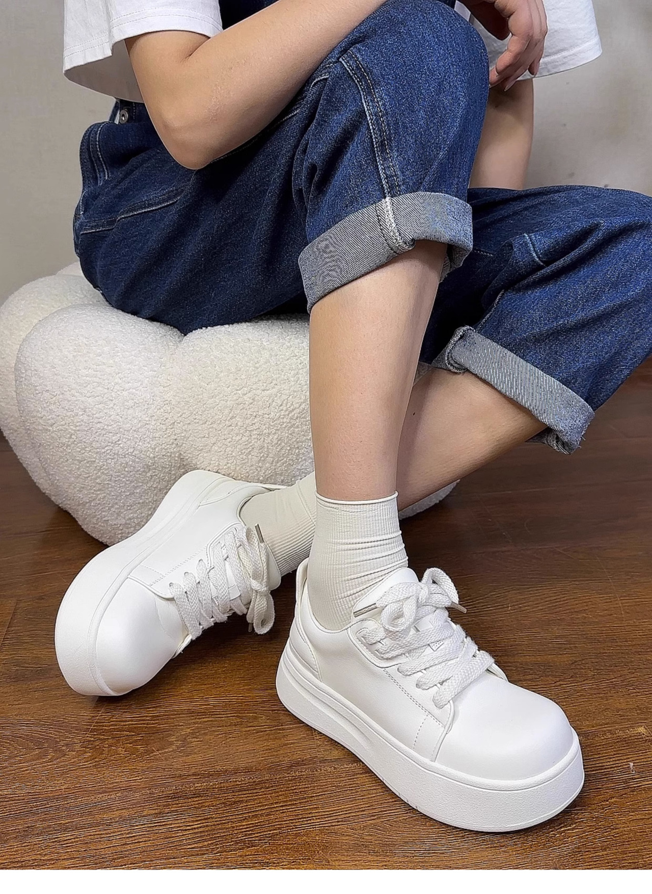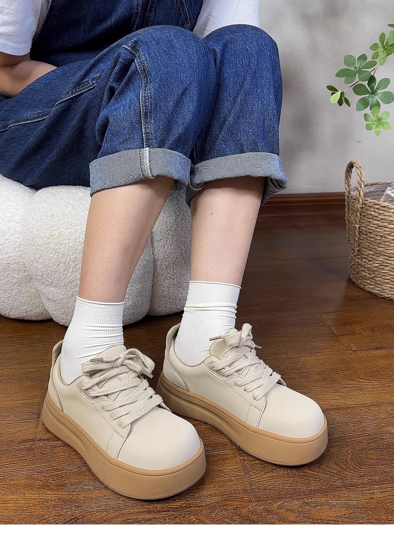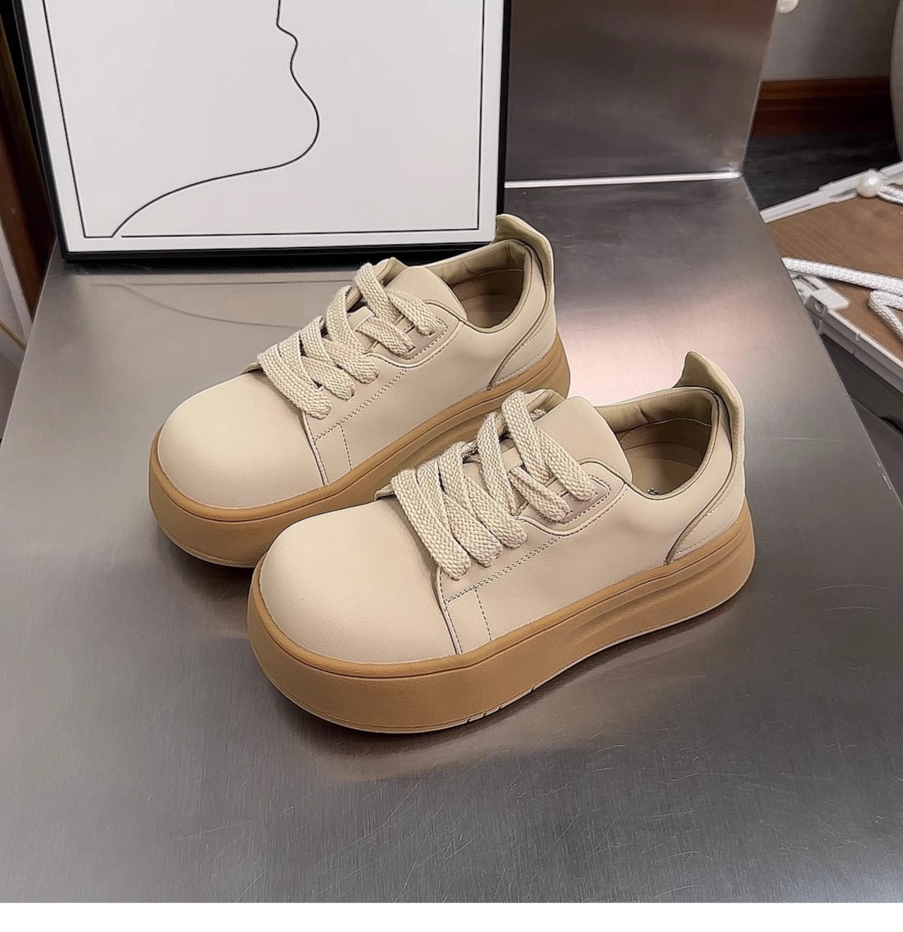 Oufan 소프트 가죽 두꺼운 단독 큰 머리 흰색 신발 여성의 2025 봄 새로운 높은 덩어리 올 매치 캐주얼 스니커즈 여성 신발