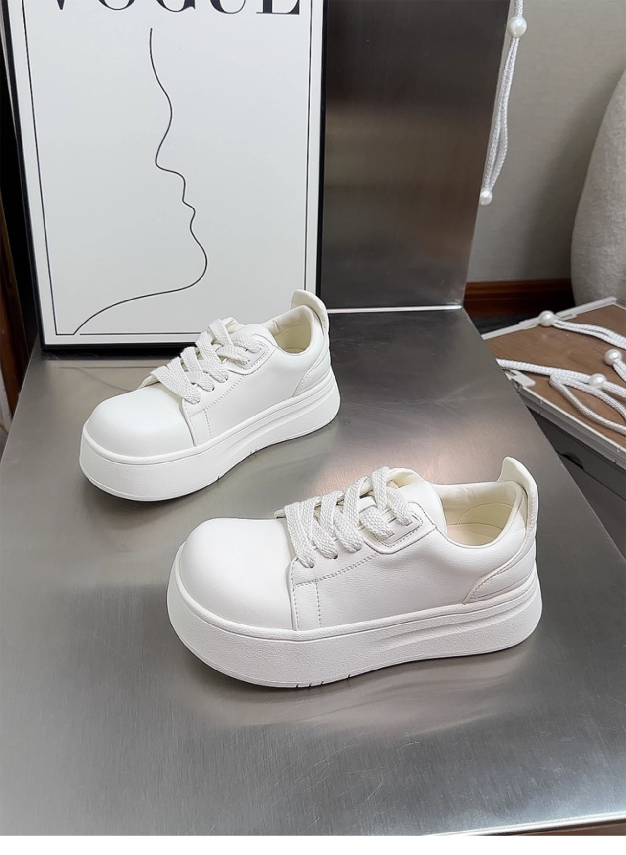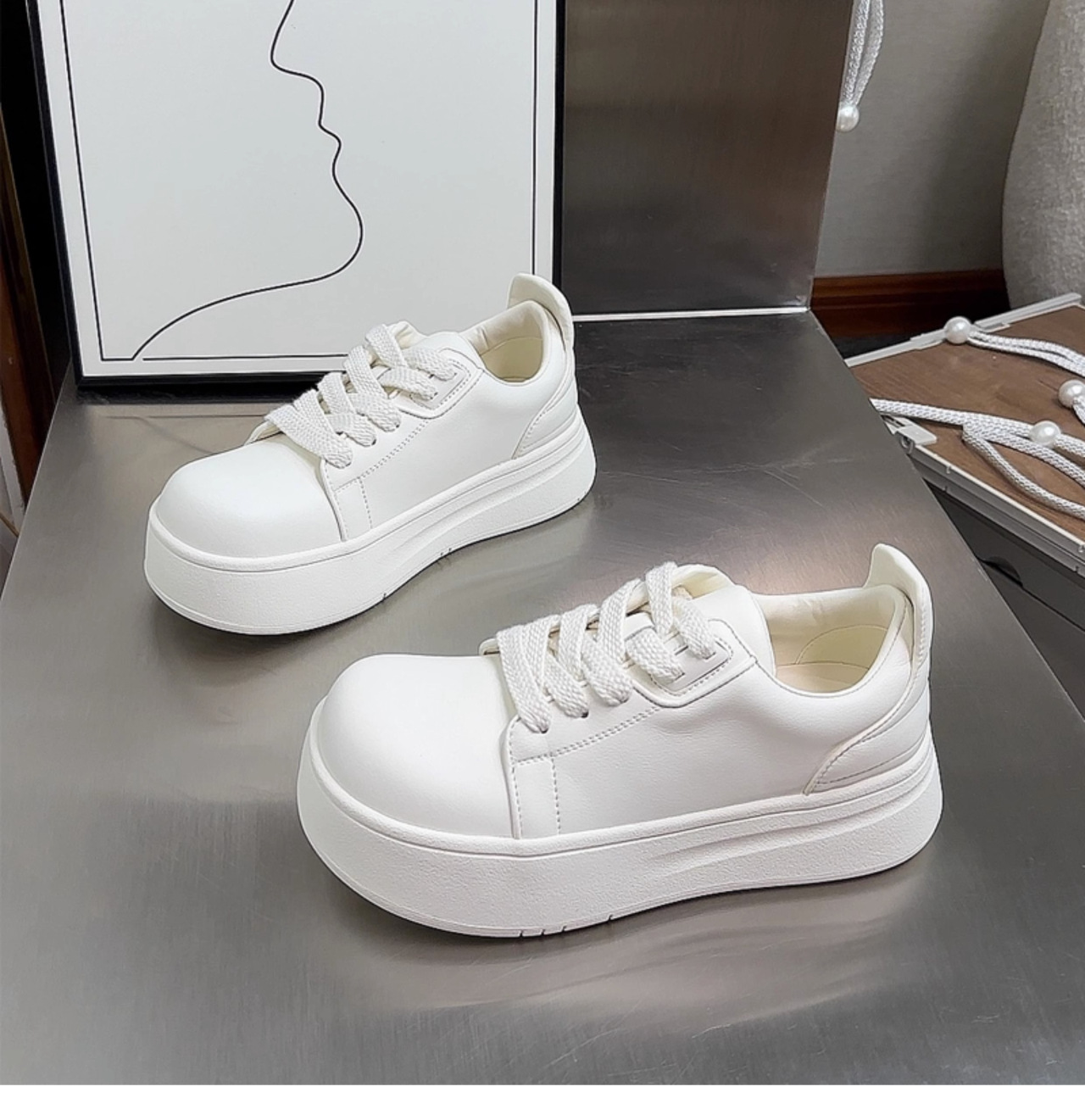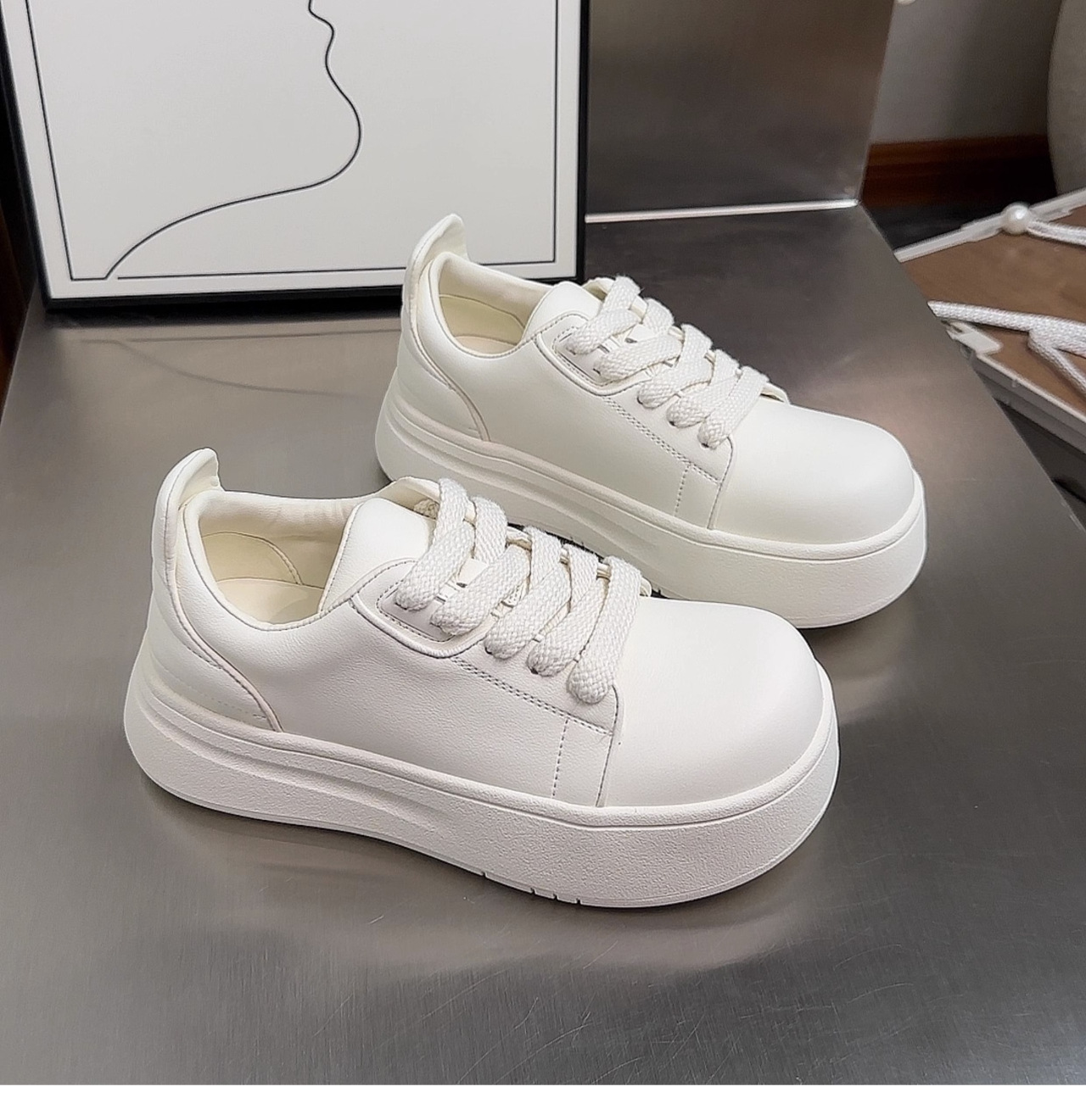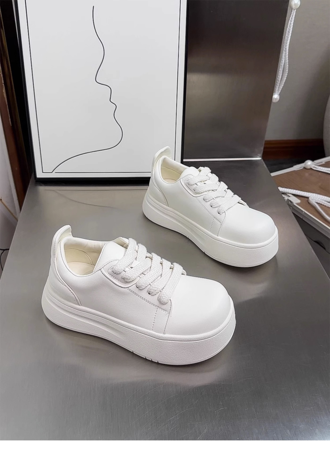 Oufan 소프트 가죽 두꺼운 단독 큰 머리 흰색 신발 여성의 2025 봄 새로운 높은 덩어리 올 매치 캐주얼 스니커즈 여성 신발스토어 가기
