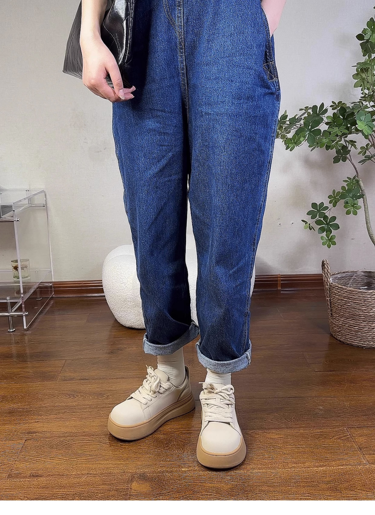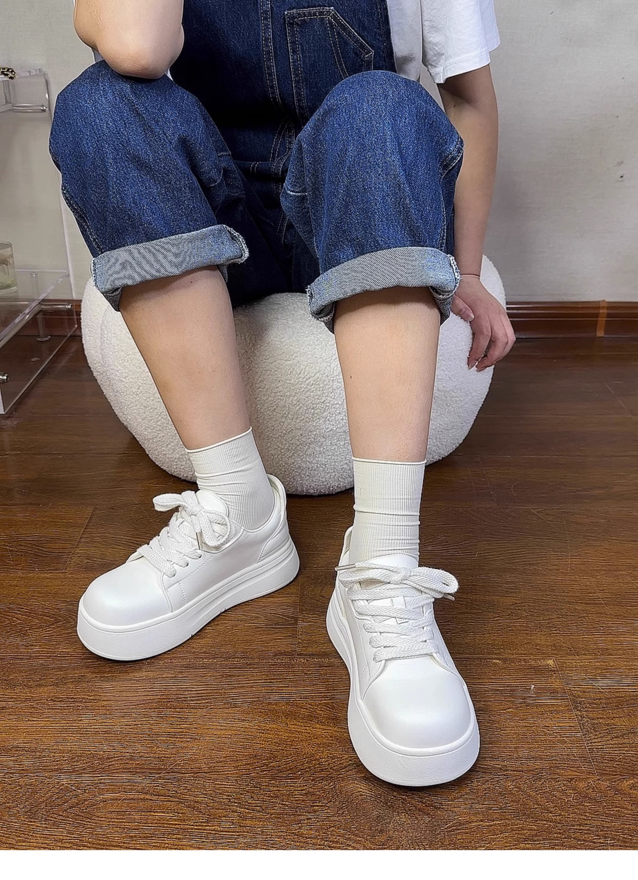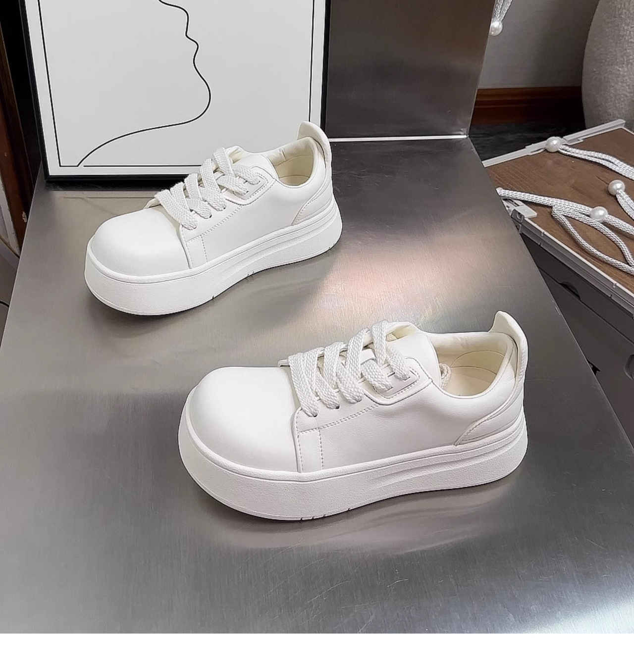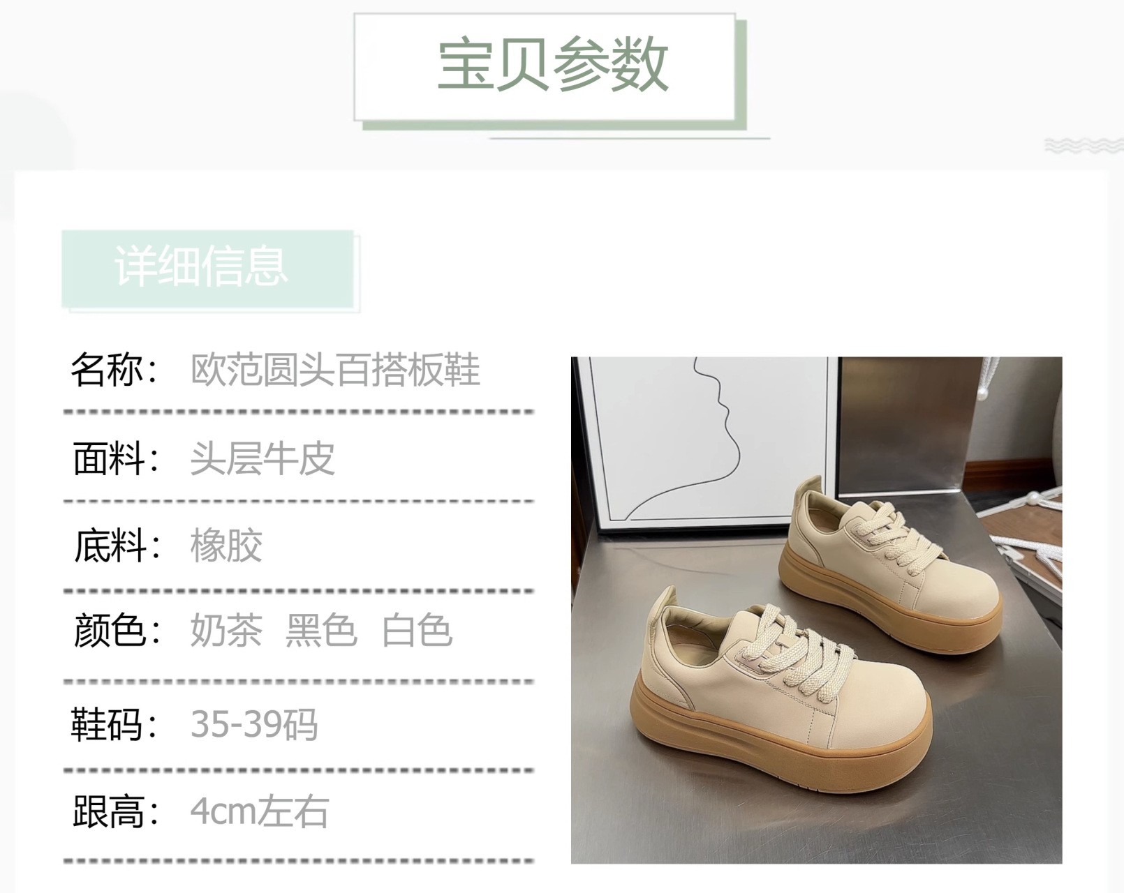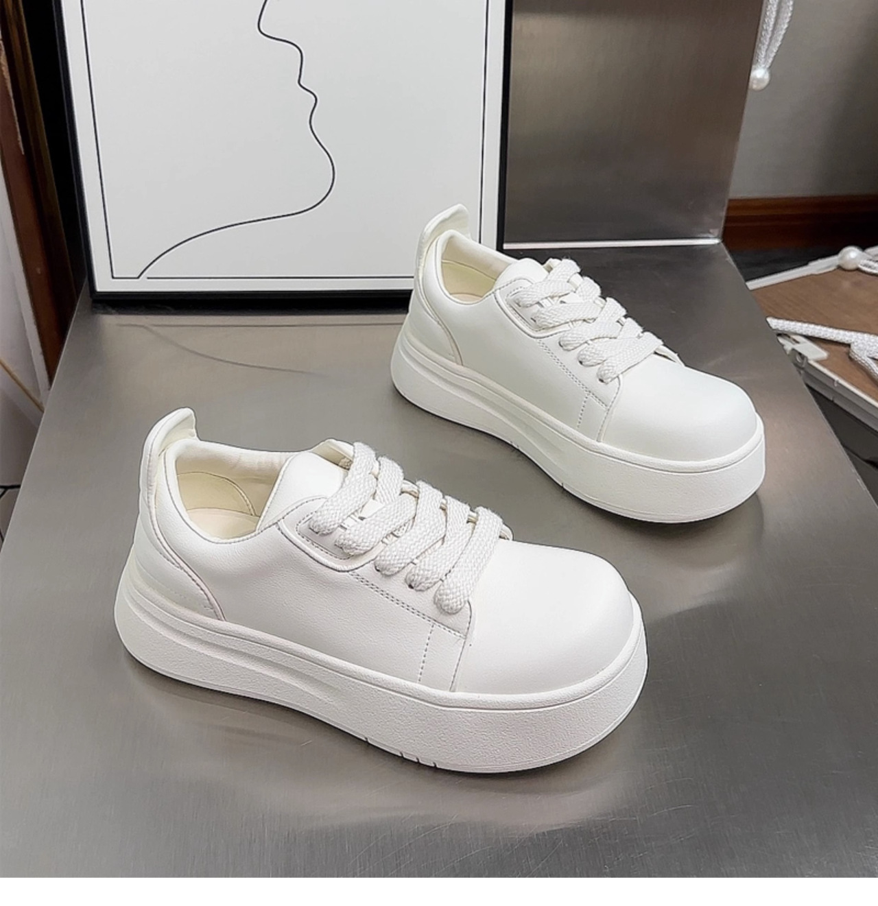Oufan 소프트 가죽 두꺼운 단독 큰 머리 흰색 신발 여성의 2025 봄 새로운 높은 덩어리 올 매치 캐주얼 스니커즈 여성 신발스토어 가기