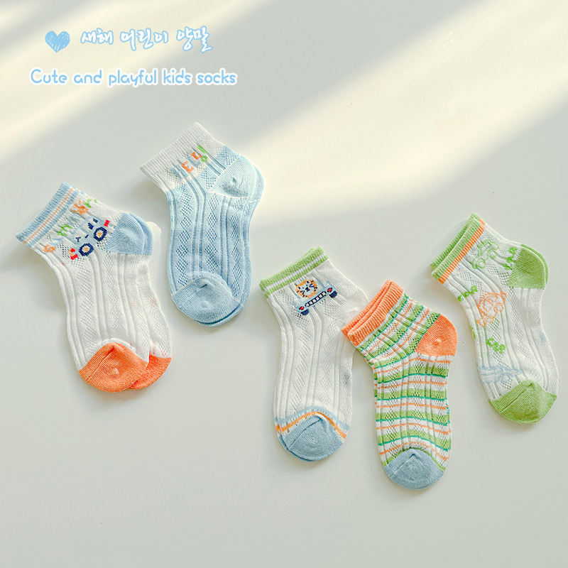 2025 봄과 여름 새로운 어린이 양말 메쉬 땀 흡수성 통기성 얇은 소년 소녀 양말 아기면 양말 도매