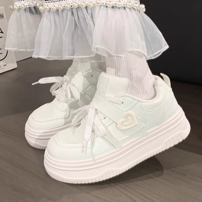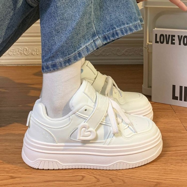 2025 봄 작은 흰색 신발 새로운 한국 스타일 여학생 두꺼운 밑창 빵 신발 증가 스포츠 보드 신발 캐주얼 신발스토어 가기