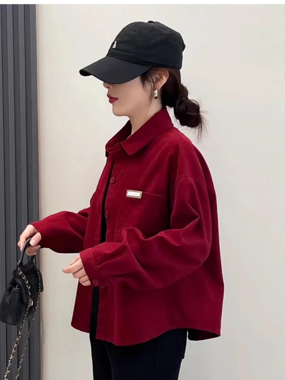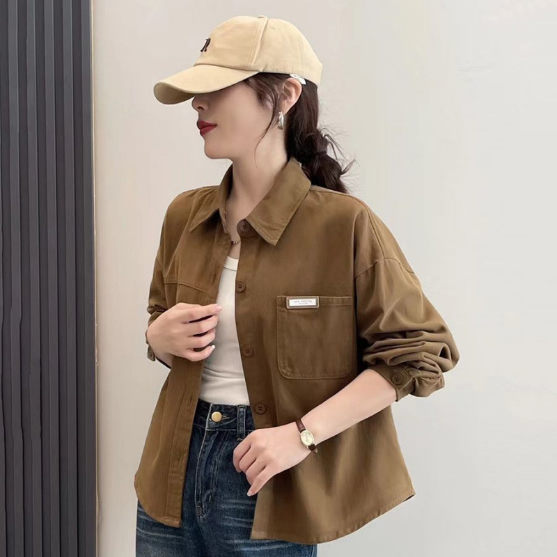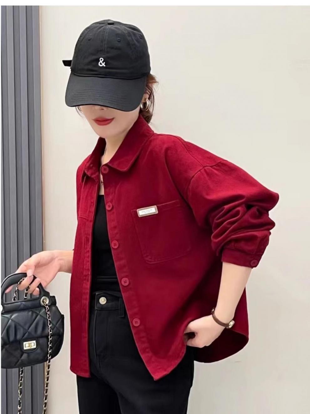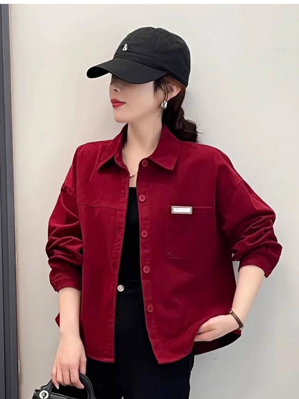 핑크 데님 코튼 쇼트 코트 여자 2024 가을 새로운 느슨한 캐주얼 올 매치 디자인 틈새 트렌디 셔츠스토어 가기