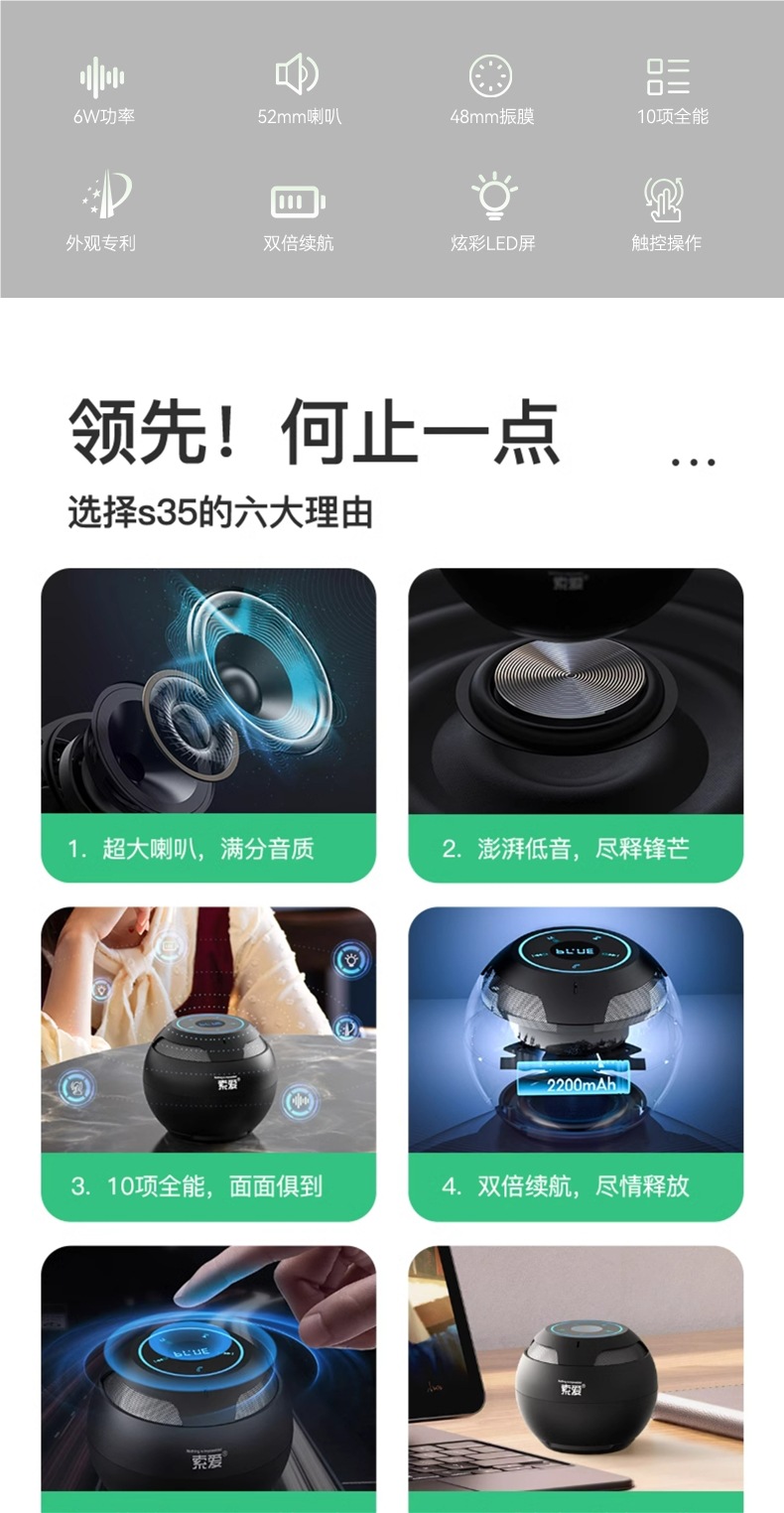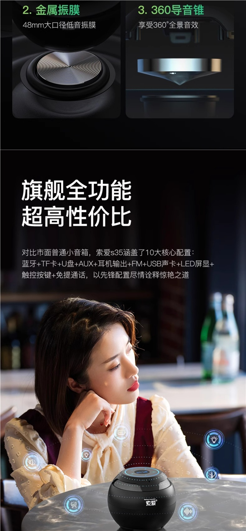 S35 블루투스 오디오 무선 작은 고품질 자동차 스피커 휴대용 미니 서브 우퍼 새로운스토어 가기