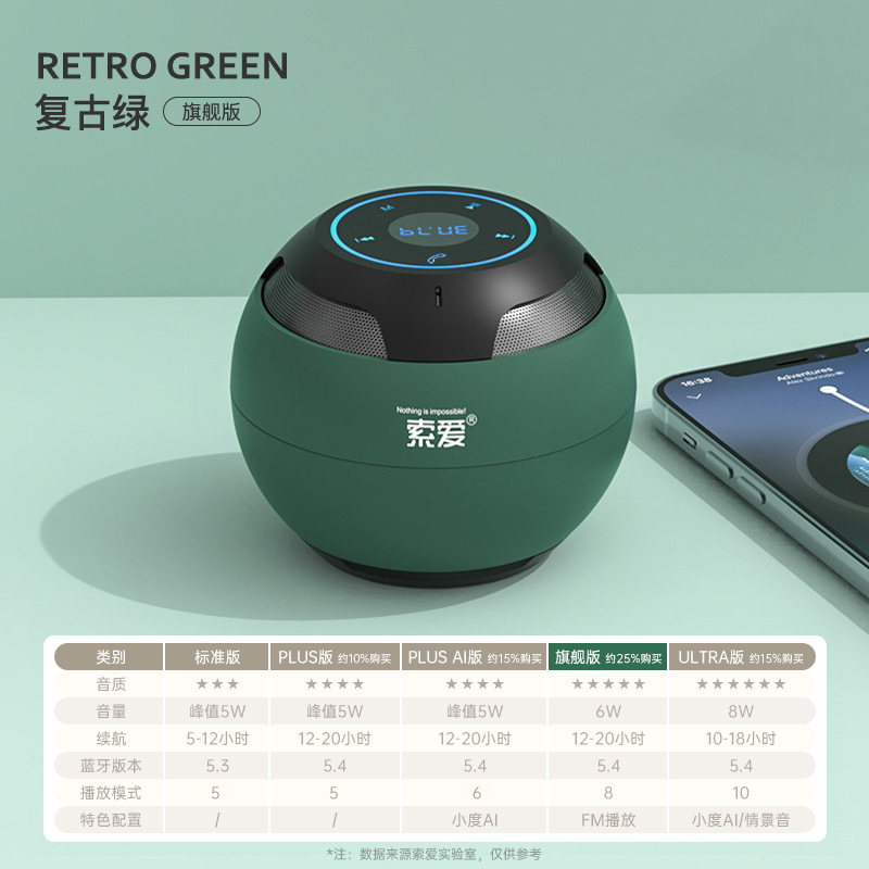 • 레트로 그린 플래그십 버전 [2200mAh 배터리 수명]| USB 플래시 드라이브 삽입 가능| FM 재생| 6W 고출력 】