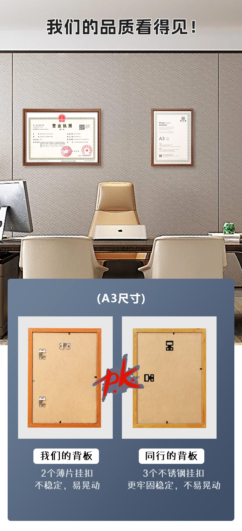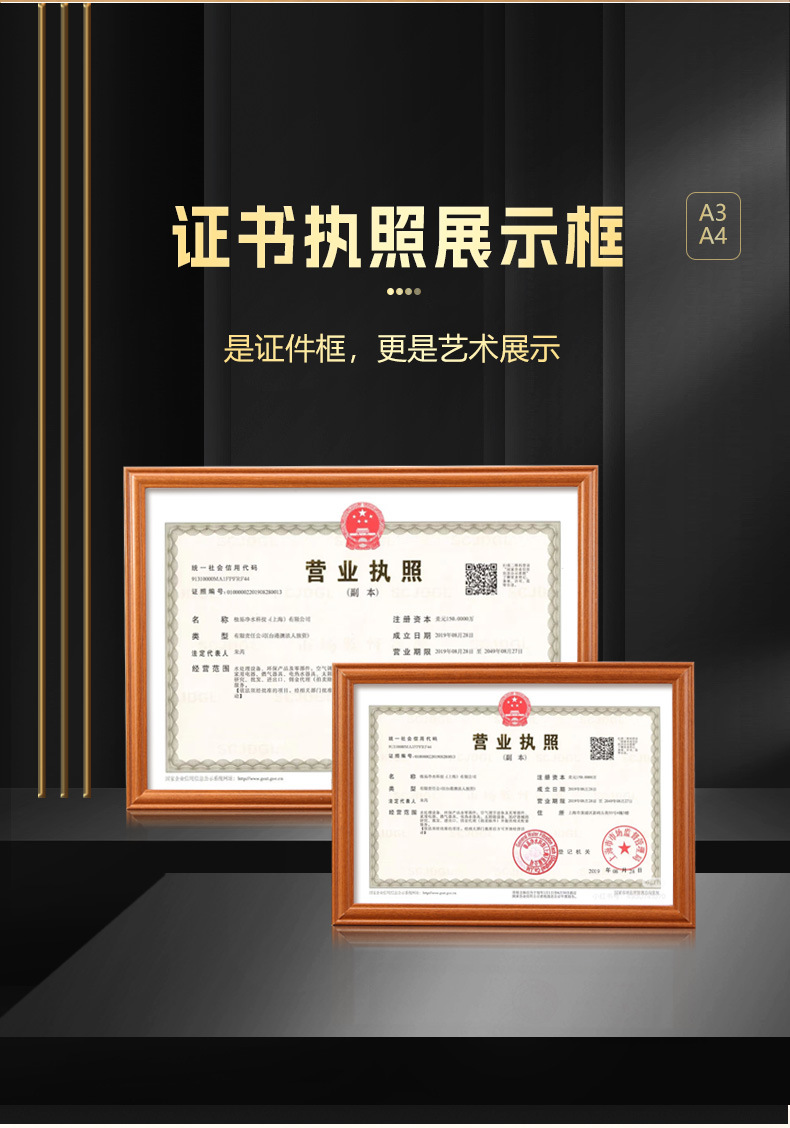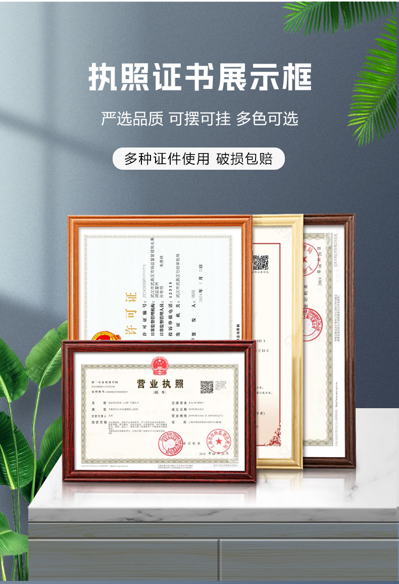 나무 라이센스 프레임 A3A4 인증서 프레임 비즈니스 라이센스 원본 복사 사진 프레임 매달려 이중 목적 건강 라이센스 프레임스토어 가기