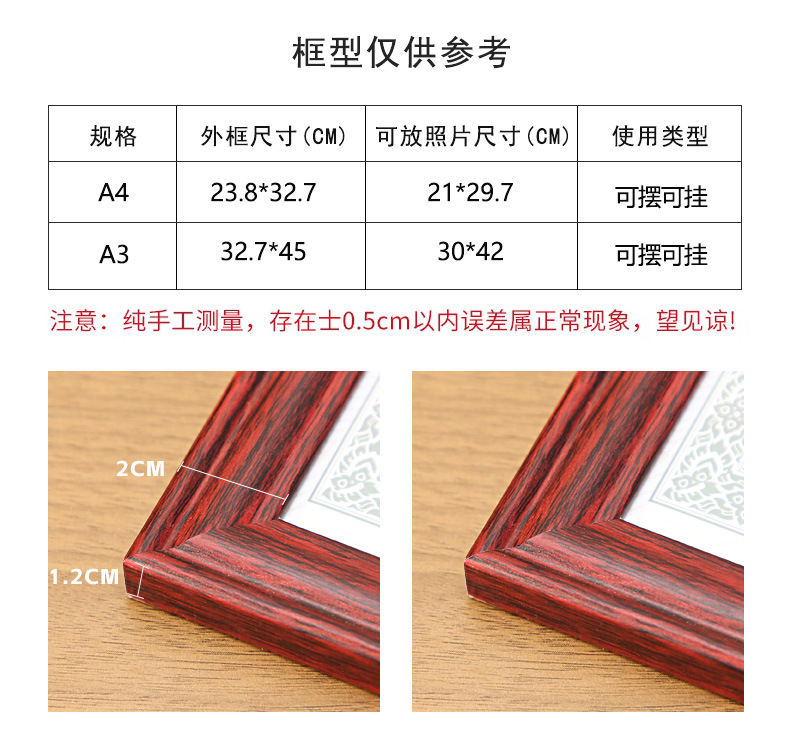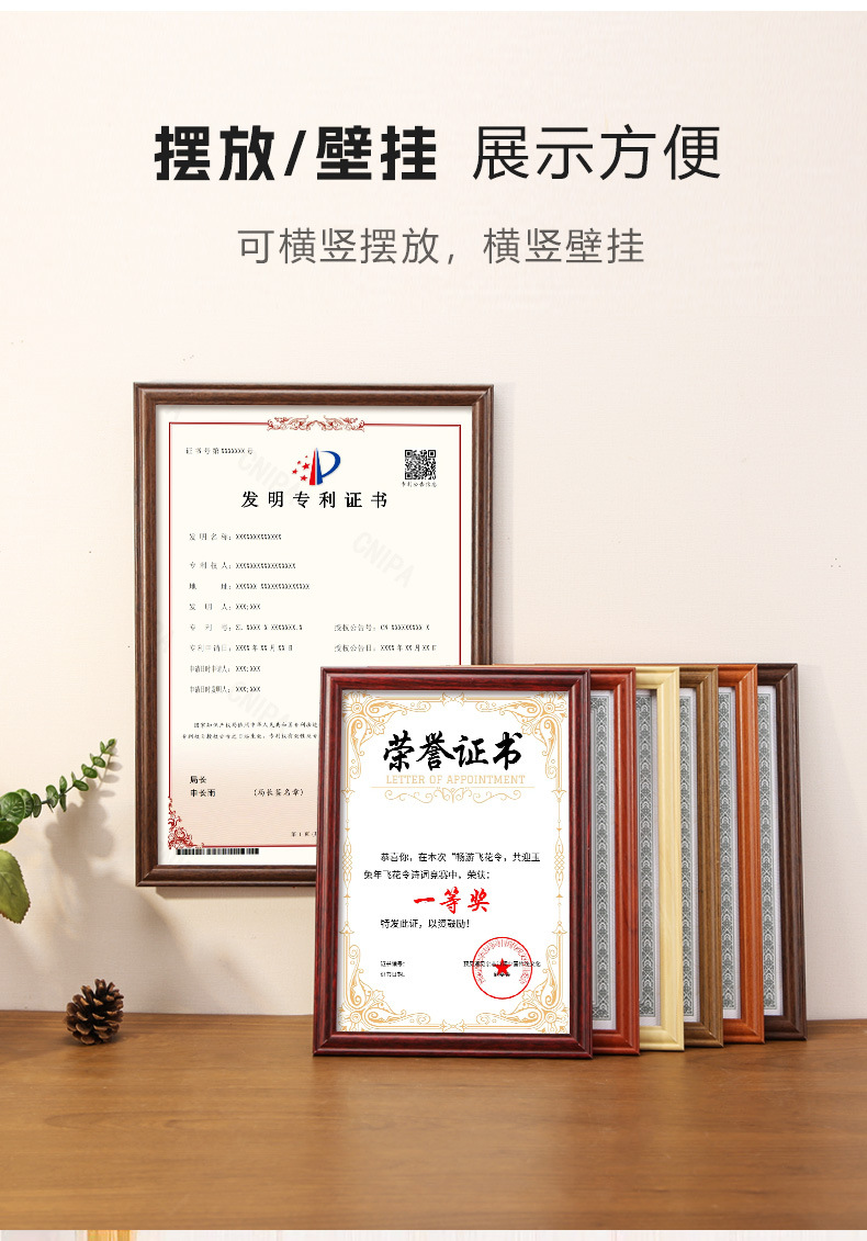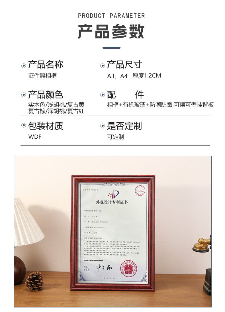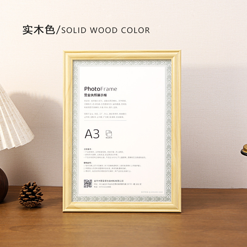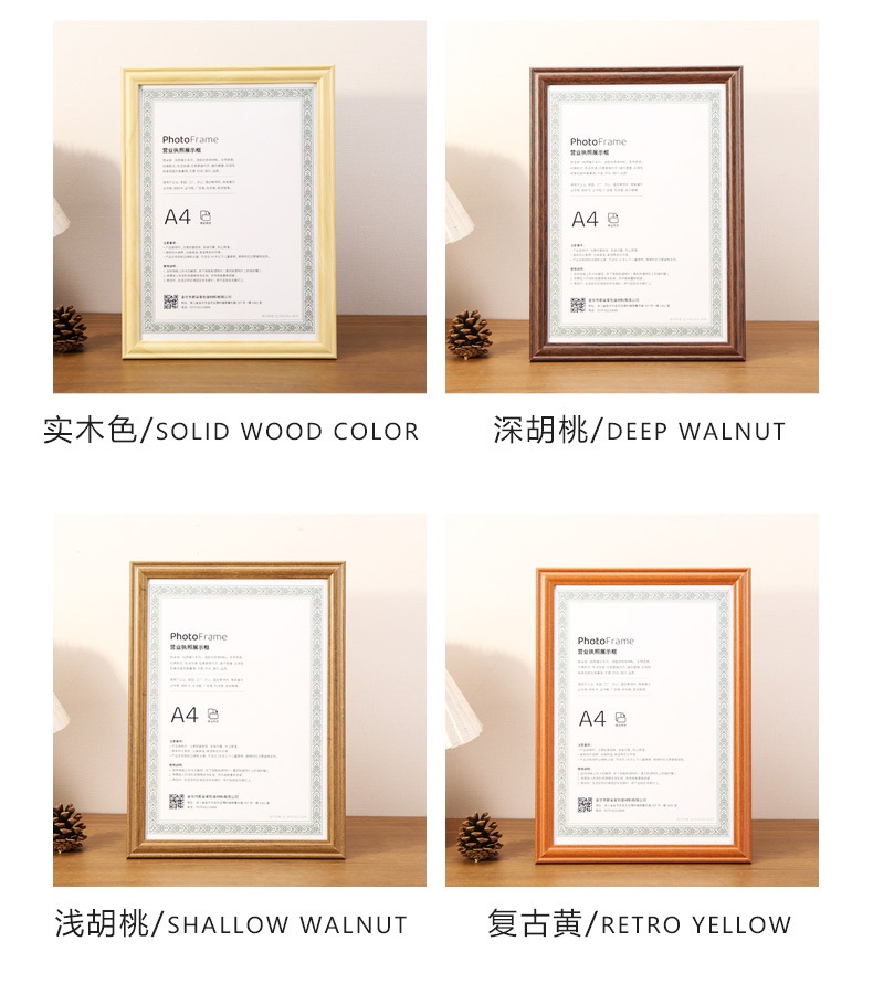 나무 라이센스 프레임 A3A4 인증서 프레임 비즈니스 라이센스 원본 복사 사진 프레임 매달려 이중 목적 건강 라이센스 프레임