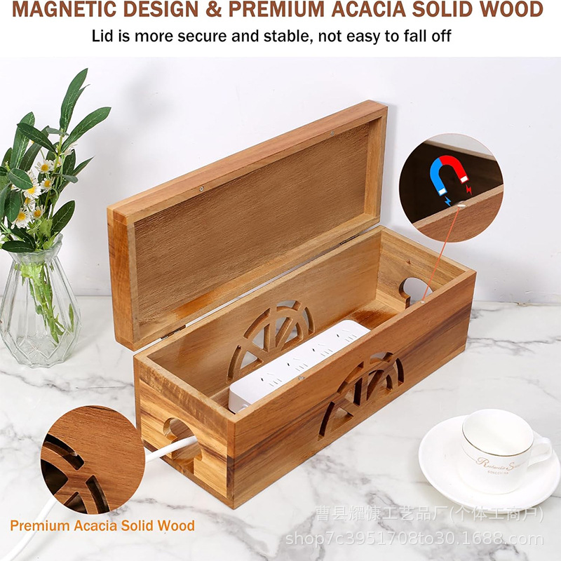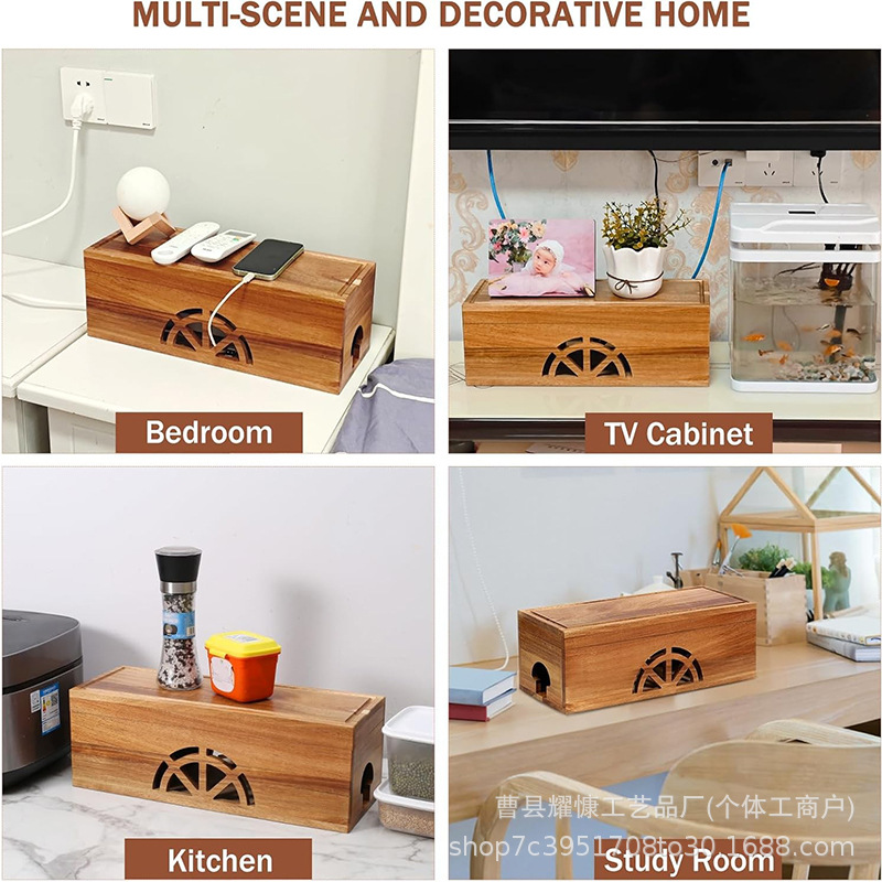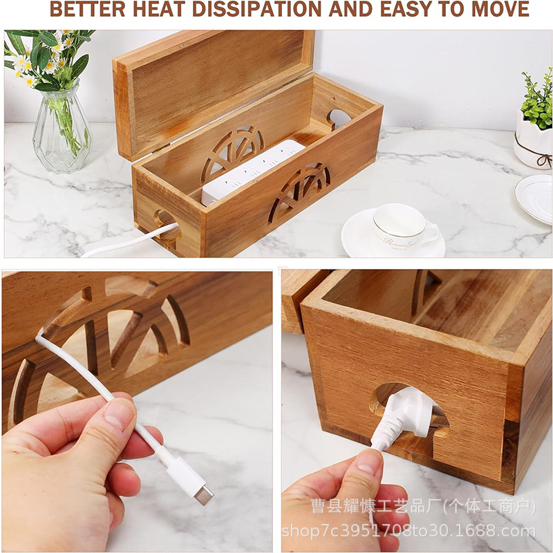 나무 전원 코드 마무리 상자 케이블 상자 와이어 차폐 상자 와이어 관리 상자 뚜껑 플러그인 저장 상자스토어 가기