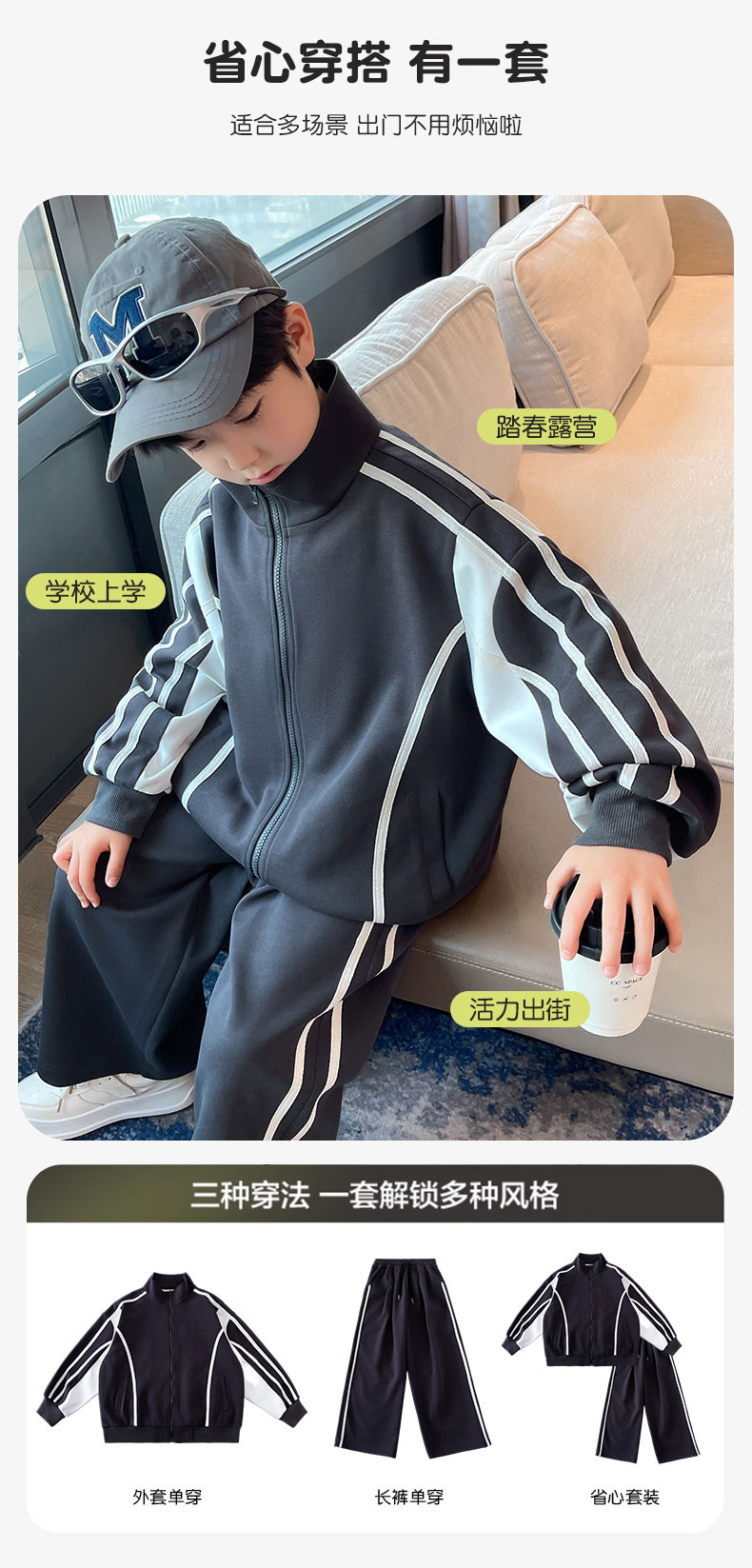 봄 중다 소년 세트 새로운 아동복 소년 투피스 어린이 맞춤형 캐주얼 운동복 지퍼 셔츠스토어 가기